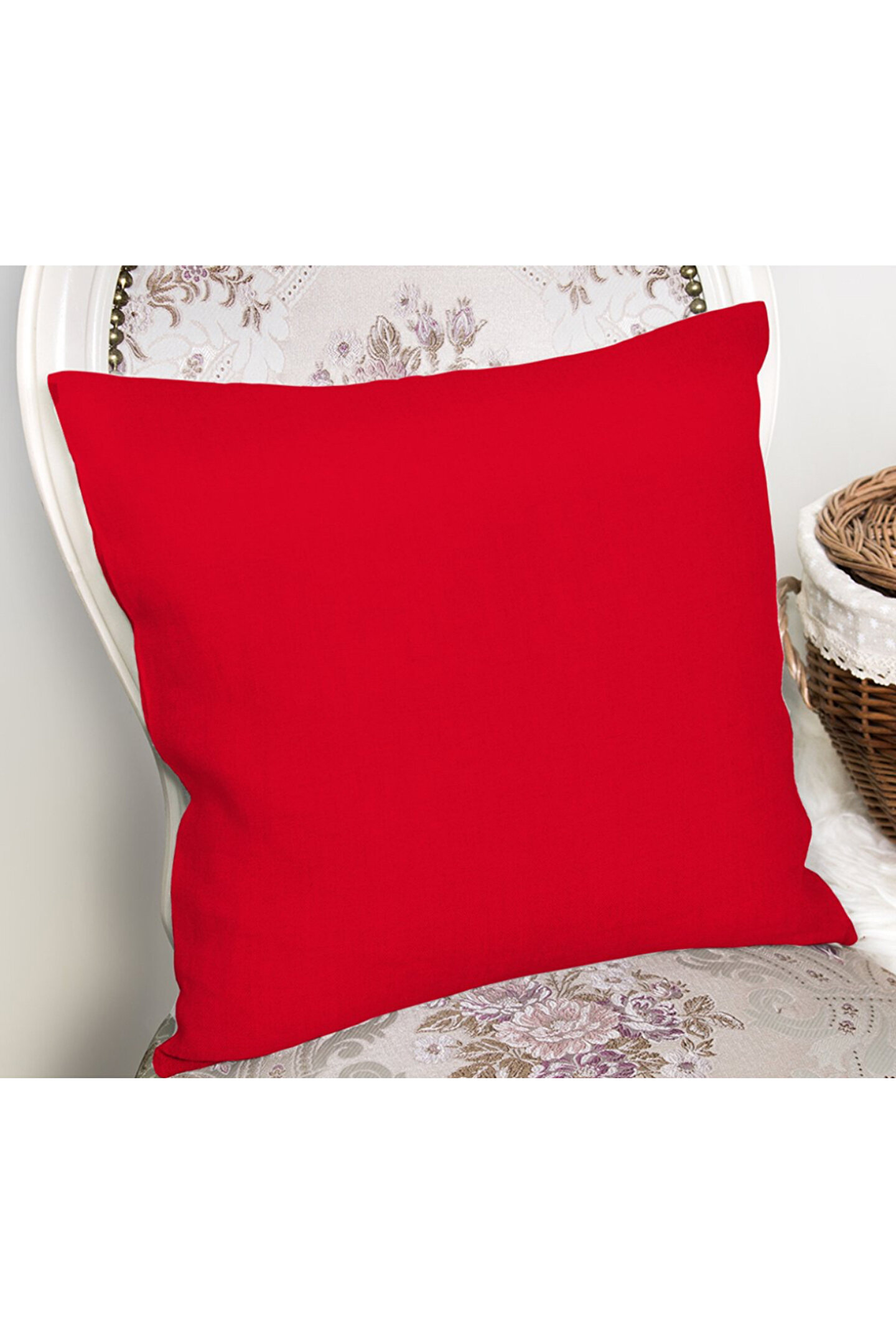 GERCELLA Keten 43X43 Kırlent Kılıfı 2LiKIRMIZI RENGİ Fermuarlı EVTEX