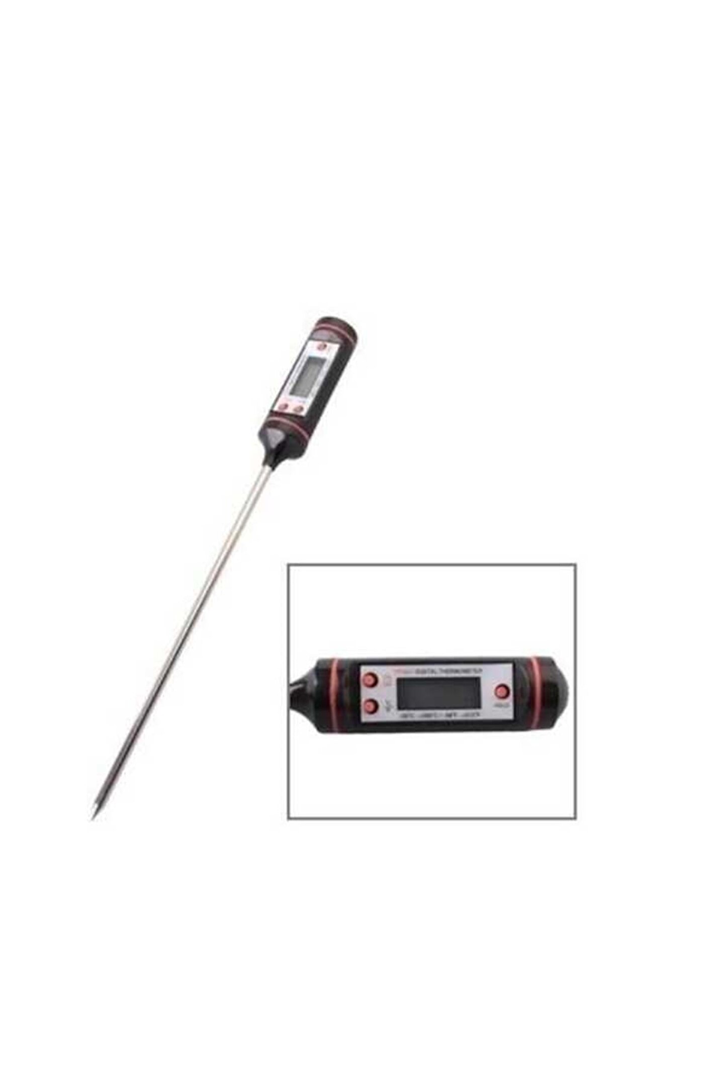 TP-101 Saplama Problu Dijital Termometre Gesi Celsi TP101 gıda ve sıvı termometresi; 15 cm uzunluğunda daldırma batırma tip problu, -50 ila 300 derece sıcaklık aralığında ölçüm yapabilen bir gıda termometresidir. Gıda dışında laboratuvarlarda ve endüstrinin bir çok alanında kolay ve hızlı sıcaklık ölçümü için kullanılabilir. Celsi TP101 Problu Termometre Özellikler Celsi TP101 gıda ve sıvı termometresi ile et, süt, su, yoğurt vb. birçok gıdanın yanı sıra laboratuvar ortamındaki kimyasal sıvıların sıcaklığını ölçmek için de kullanılır. Gıda Termometresi paslanmaz çelikten imal edilmiş ve 15 cm uzunluğunda bir proba sahiptir. Ölçülen sıcaklık değerlerini görüntülenebilmesi için cihaz LCD ekrana sahiptir. Ölçülen en yüksek ve en düşük sıcaklıkları hafızasına alır ve bunları tek tuşa basarak görebilirsiniz. "Hold" fonksiyonu ile ekrandaki değeri sabitleyebilirsiniz. "°C/ °F" tuşuna basarak sıcaklık birimini değişterebilirsiniz. "ON/ OFF" tuşu ile cihazı açıp kapatabilirsiniz. Otomatik kapanma fonksiyonu sayesinde hiçbir tuşa basılmazsa 10 dakika sonra kapanır. Böylece pilden tasarruf etmenizi sağlar. Celsi TP101 problu sıcaklık ölçer cihazı 1 adet LR44 pil ile çalışmaktadır. Cihaz silindir şeklinde plastik bir kutuya sahiptir. Cihazın paket içeriği; 1 adet TP101 saplama problu termometre, 1 adet LR44 1.5V pil ve kullanım kılavuzu ile birlikte gelmektedir. Diğer Ölçü Aleti Çeşitlerimizi Ölçü Aletleri - Osiloskop ve Problar Kategorisinde bulabilirsiniz. NOT: Ürün görseli temsilidir. Elektronik malzeme ihtiyaçlarınızı en uygun fiyatlarla BBC Elektronik'den güvenle satın alabilirsiniz. Toplu sipariş vermek yada fiyat teklifi almak için adresine e-mail atabilir 0534 363 53 30 WhatsApp hattından yada +90 0212 320 90 26 numaralı telefondan bizimle iletişime geçebilirsiniz.