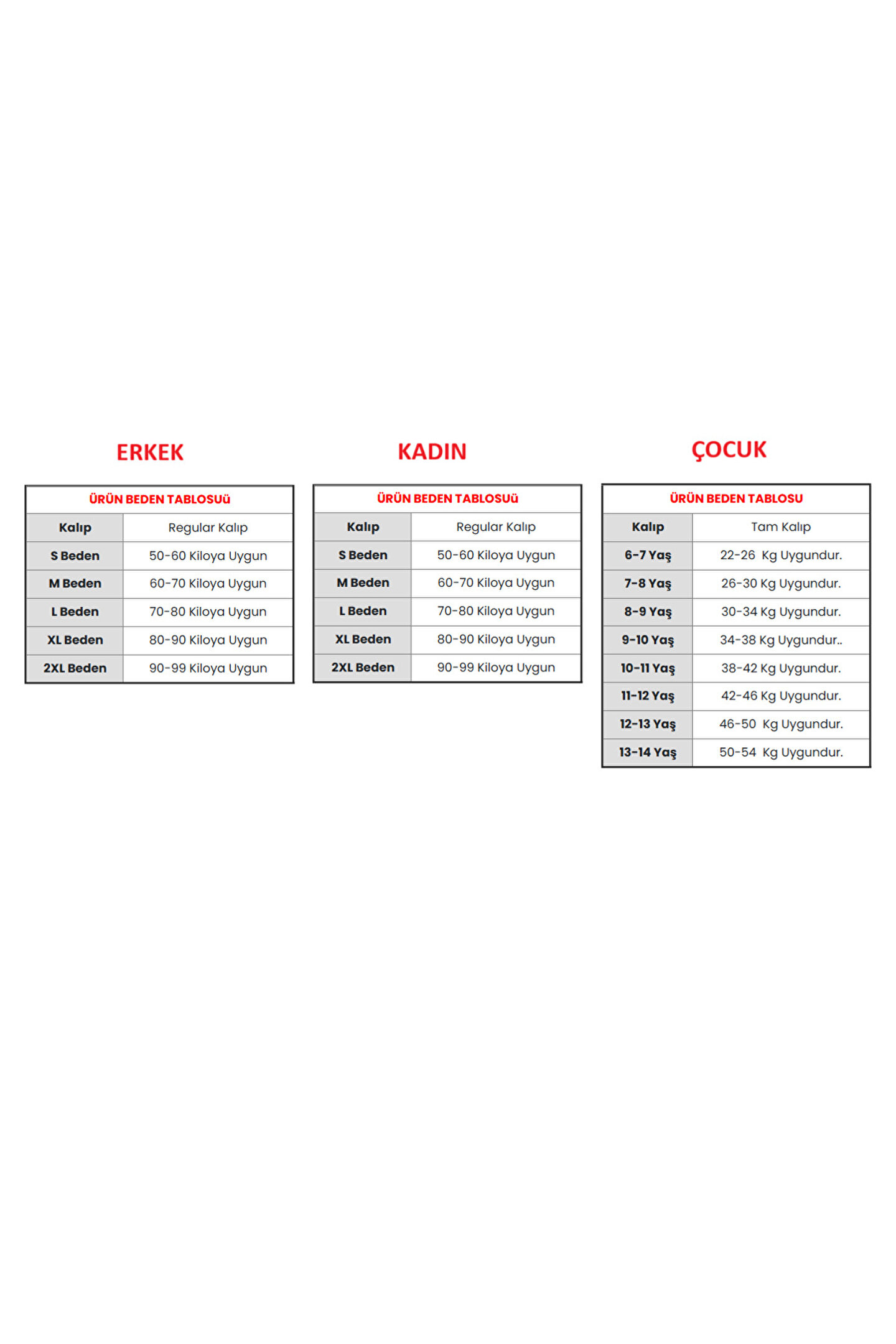 Konfor ve Şıklığın Buluşma Noktası: Tüm Aile İçin Kaliteli Giyim! Pazaryerimizde, her yaştan ve her bedenden müşterimiz için özenle seçilmiş, yüksek kaliteli ve en trend giyim ürünlerini bulabilirsiniz.; Şıklığınızdan ödün vermeden maksimum konforu yaşamanız için tasarlanan koleksiyonumuzda, Erkek, Kadın ve Çocuk kategorilerinde aradığınız her şeyi bulacaksınız.; Doğru Bedeni Bulmak Çok Kolay! Online alışverişte en büyük endişe olan beden seçimi konusunda size yardımcı olmak için detaylı kilo aralıklarını sunduk.; Aşağıdaki listeleri inceleyerek, üzerinize tam oturacak ürünü kolayca sepetinize ekleyebilirsiniz.; ERKEK BEDEN REHBERİ S Beden: 55 - 69 Kiloya Uygun M Beden: 70 - 79 Kiloya Uygun L Beden: 80 - 89 Kiloya Uygun XL Beden: 90 - 99 Kiloya Uygun 2XL Beden: 99 - 105 Kiloya Uygun KADIN BEDEN REHBERİ S Beden: 50 - 65 Kiloya Uygun M Beden: 65 - 75 Kiloya Uygun L Beden: 75 - 85 Kiloya Uygun XL Beden: 85 - 95 Kiloya Uygun 2XL Beden: 95 - 105 Kiloya Uygun ÇOCUK BEDEN VE YAŞ REHBERİ 6 - 7 Yaş: 22 - 26 Kg Uygundur 7 - 8 Yaş: 26 - 30 Kg Uygundur 8 - 9 Yaş: 30 - 34 Kg Uygundur 9 - 10 Yaş: 34 - 38 Kg Uygundur 10 - 11 Yaş: 38 - 42 Kg Uygundur 11 - 12 Yaş: 42 - 46 Kg Uygundur 12 - 13 Yaş: 46 - 50 Kg Uygundur 13 - 14 Yaş: 50 - 54 Kg Uygundur Neden Bizi Seçmelisiniz? Güncel Moda: Her sezonun en yeni ve dikkat çekici parçaları.; Kalite Garantisi: Uzun ömürlü kullanım için birinci sınıf kumaşlar ve işçilik.; Tam Oturan Bedenler: Detaylı beden rehberimiz sayesinde /değişim derdi yok.; Şimdi keşfetmeye başlayın ve gardırobunuzu yenileyin!