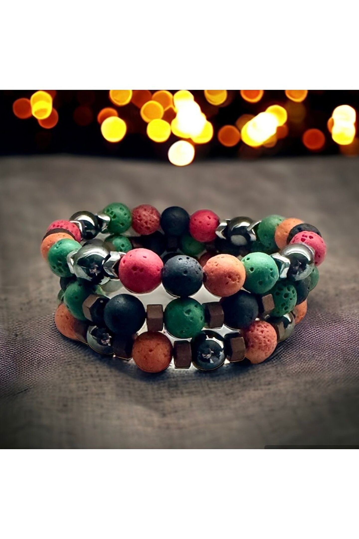 Gift Selections Renkli Lav Taşı ve Doğal Taşlarla El İşi; Boho Stili Erkek Bileklik , Şifa Bileklik