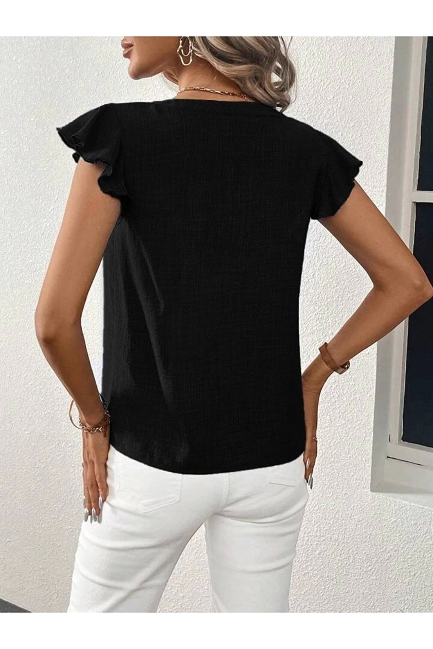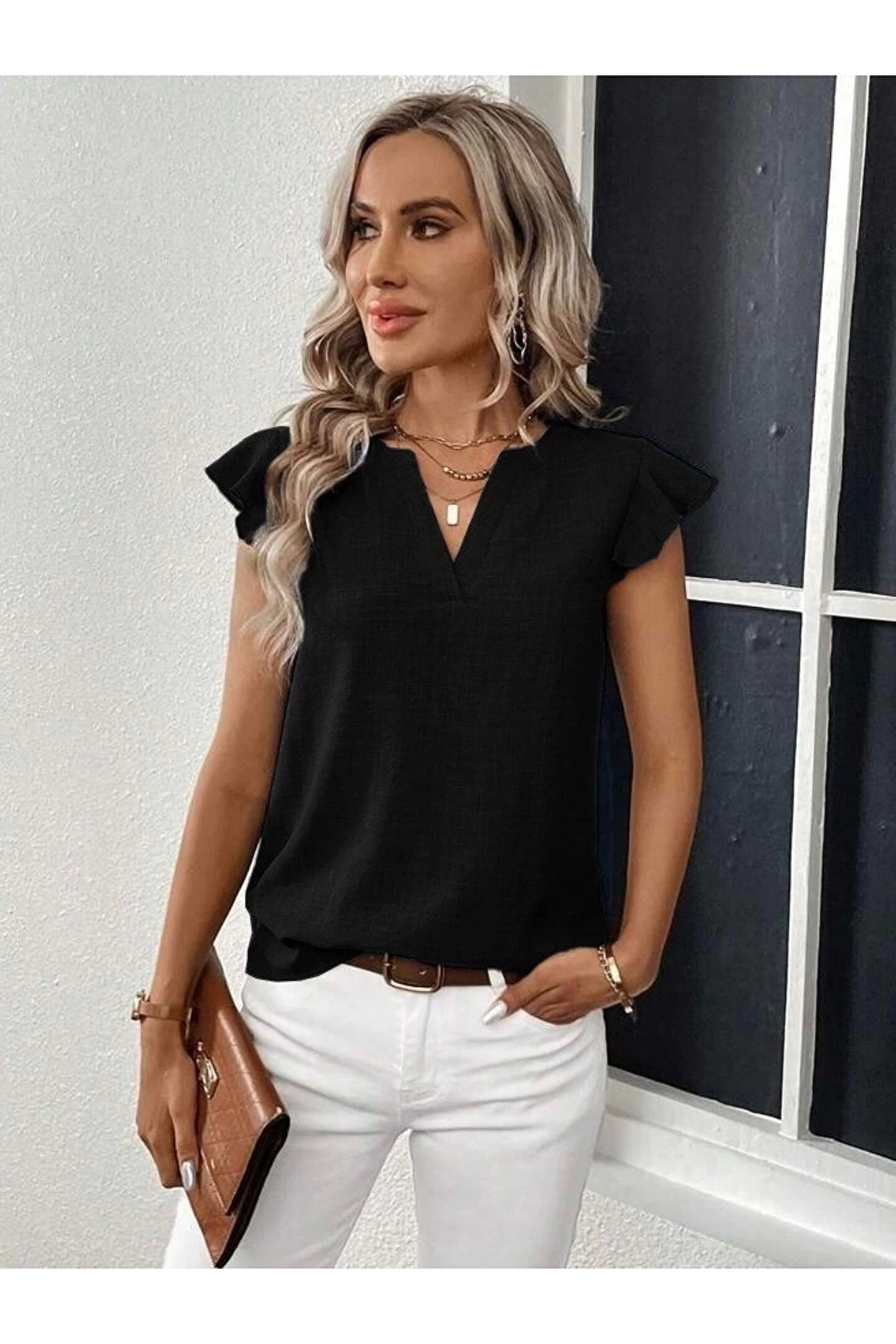 Kadın Kısa Kelebek Kollu V Yakalı Bluz
