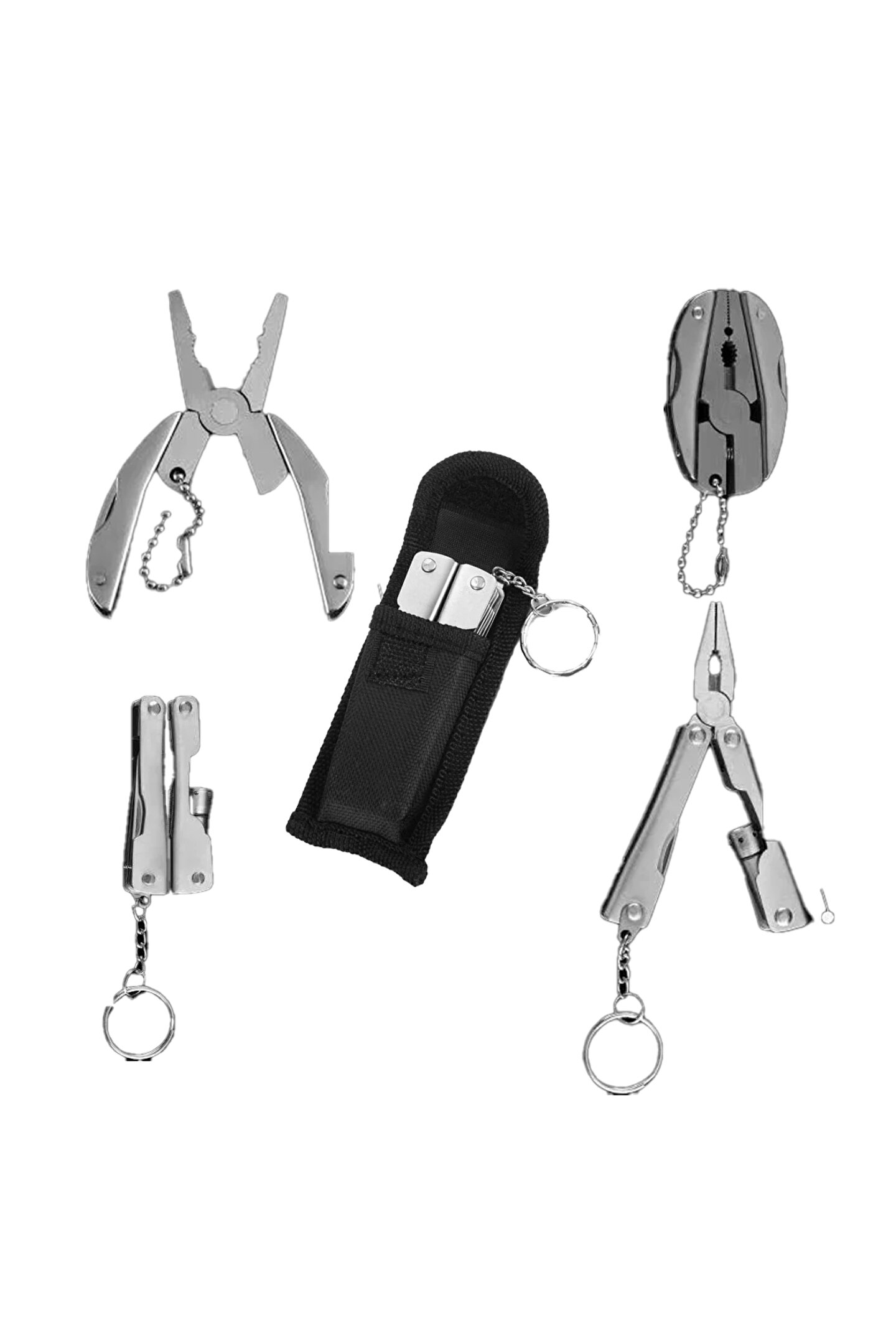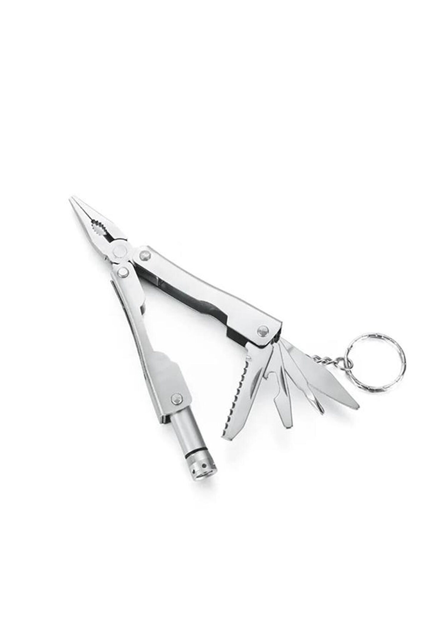 Çok Fonksiyonlu Araçlar: Pense, kesici, yarı testere, keskin kazıyıcı, küçük tek kelime tornavida, şişe açacağı, büyük tornavida, bıçak, oluklu tornavida, orak, kireç çözücü, anahtarlık.