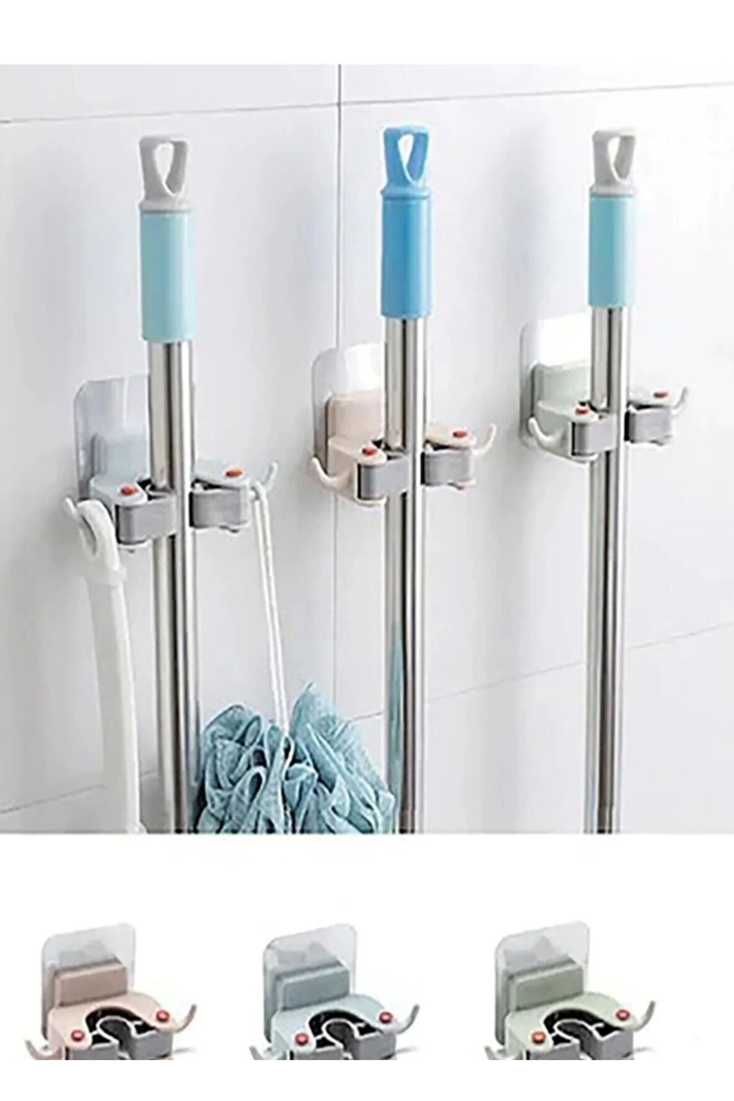 3 Adet Paspas Süpürge Fırça Ve Mop Askısı Sap Tutucu Mutfak Banyo Askı GODHLIFE-ASKI ; Süpürge ve Paspas Tutucu Duvar Askısı Evinizdeki fırça ve mopları yerden kaldırır, ve duvarda düzenli tutar. ; Dilediğiniz duvara yada kapı arkasına asabilirsiniz. ; Güçlü yapıştırıcısı ile ister yapıştırın ister de montaj malzemeleri ile duvara monte edin. ; Temizliğe başlarken fırça ve mopların yerini aramaktan kurtulun. ; Fırça, süpürge, paspas ve mop,şemsiye gibi eşyalarınızı asmanızı sağlar. ; Kapıların arkasında ya da duvarlarda kullanılabilir. ; Ürün Boyutları: 11 cm x 6 cm x 7 cm. ; Ürün Renkleri: Hepsi birbirinden şık - Yeşil, gri, siyah, krem, beyaz, pembe, mavi. ; Ürün stok durumuna göre asorti, karışık renk olarak gönderilecektir. ; Paket İçeriği: 3 Adet Süpürge ve Paspas Tutucu Duvar Askısı ; Renkler: Asorti ;