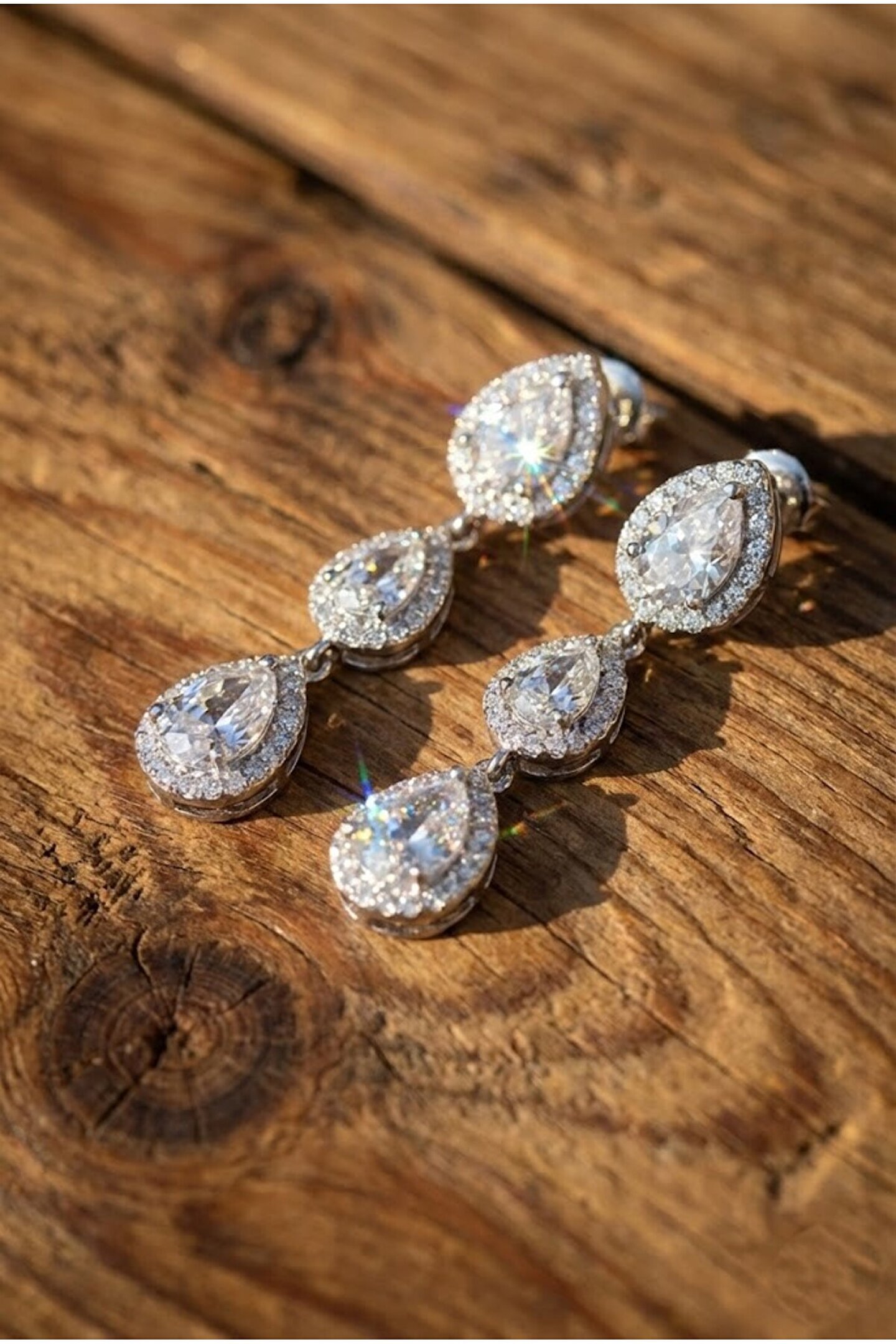 Göğüş 3 Taşlı Küpe