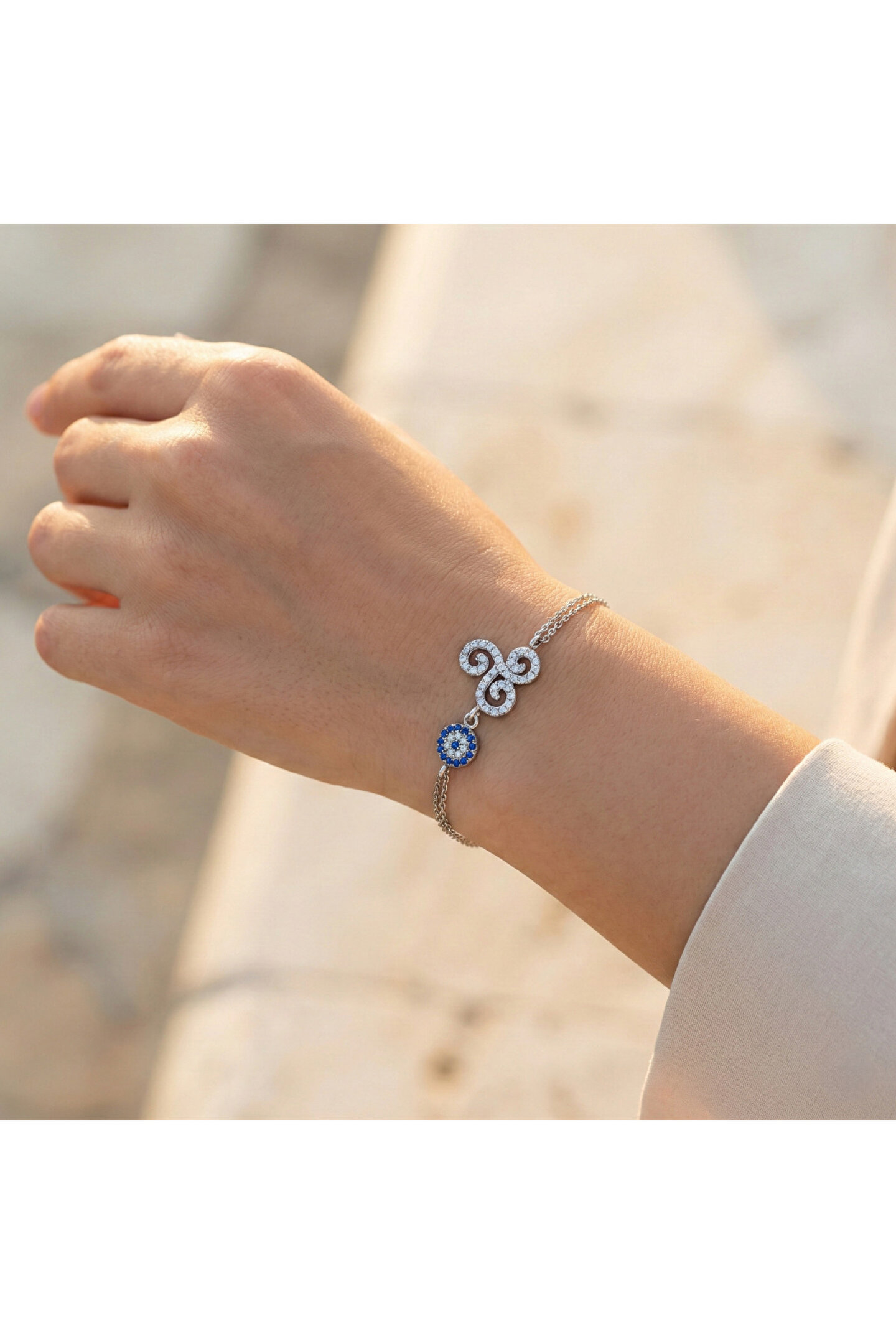 Zarif tasarımıyla dikkat çeken bu bileklik, gümüş rengin asaletini yansıtır; Zirkon taş detayları ile göz alıcı bir parlaklık sunar ve her türlü kıyafetle uyum sağlar; Taş cinsi zirkon sayesinde, gerçek elmasların ışıltısını ekonomik bir alternatif olarak yaşatır; Günlük kullanım için idealdir; hem şıklığı hem de rahatlığı bir arada sunar;