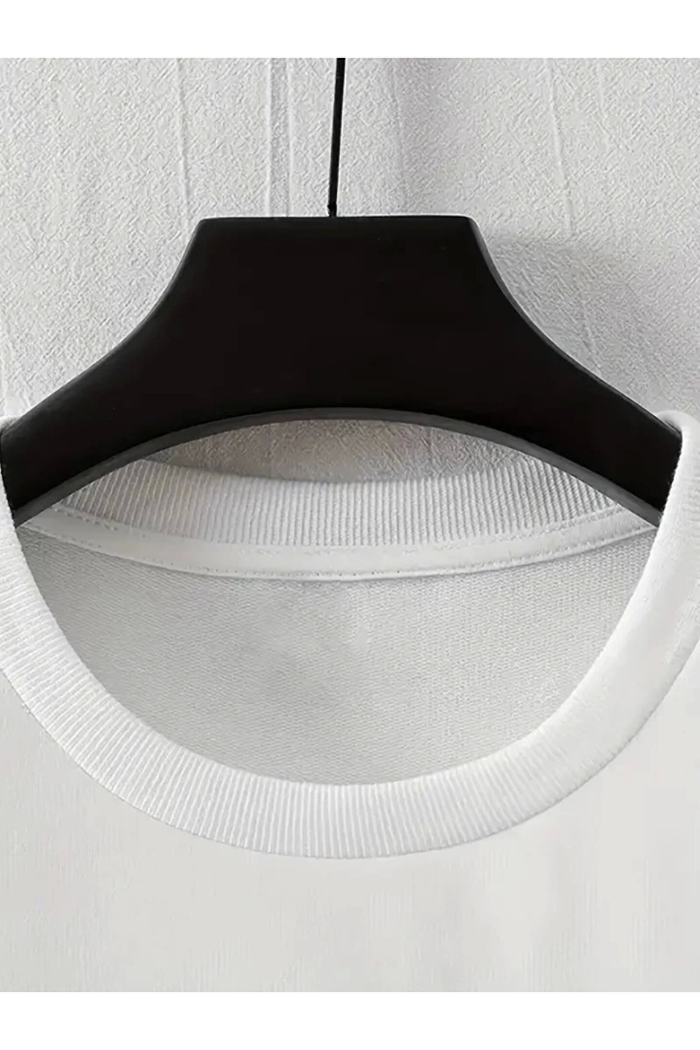 Gökyüzü Moda Baskılı Oversize Bisiklet Yaka T-shirt - Beyaz