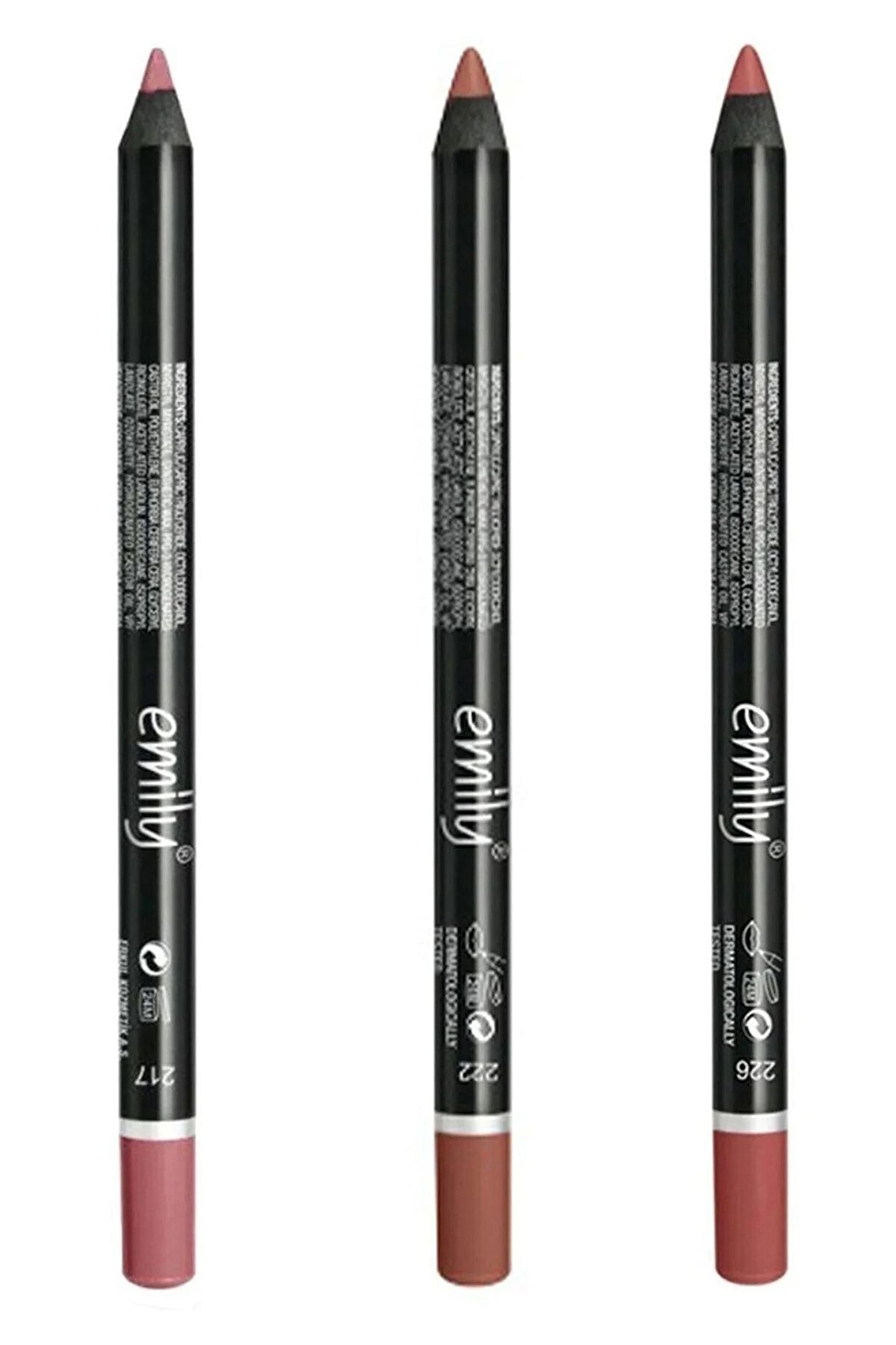 Emıly Dudak Kalemi 3'lü Set No 217 222 226 Yoğun renk pigmentlerinin özelliği ile dudak makyajında uzun süren kalıcı çizgiler yarat! Ambalajı açılan ürünlerin iadesi yapılmamaktadır
