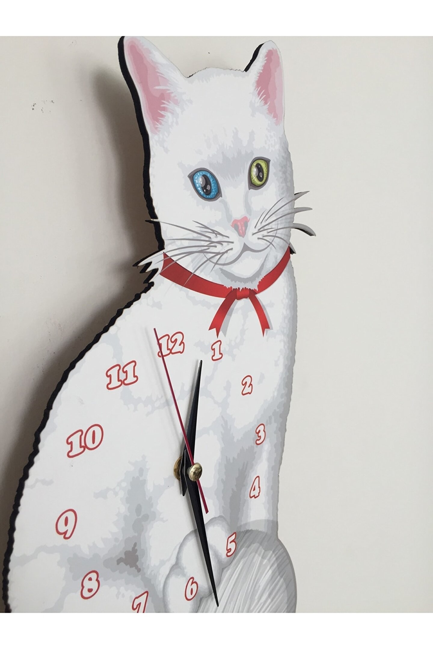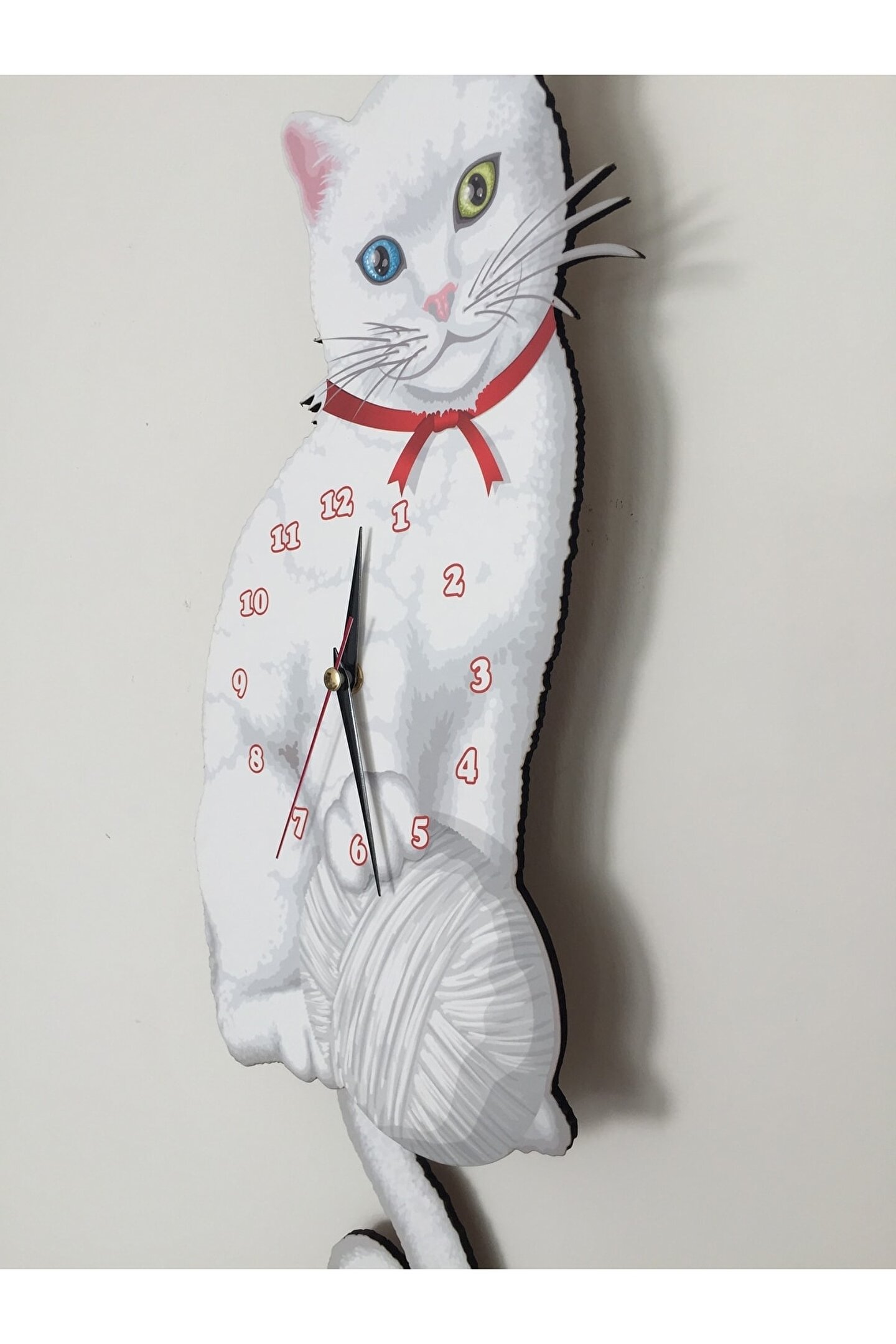 Goodtime Beyaz Kedi Dekoratif Sallanır Sarkaçlı Duvar Saati ; Ürün özellikleri: ; - 1. Kalite Ahşap Mdf Malzemeden üretilmiştir. ; - Ürün tamamen el yapımı (hand made) olup,yüksek kaliteli baskı ile üretilmektedir. ; - 2 adet AA pil ile çalışır. ; - 1 adet pil, saati çalıştırır; diğer pil sarkacı hareket ettirir. ; - Her saniyede “Kuyruk” sağa sola hareketeder. ; - Mekanizması yüksek kaliteli sessiz (quartz)çalışan akar saattir. ; - Saat üzerindeki akrep, yelkovan ve saniye metal malzemedir. ; - Montaj şekli: Duvar çivisi ; - Montaja hazır özel askı aparatı ile bir çivi ve ya vidayla duvara kolayca sabitleyebilirsiniz. ; -Mutfak,oturma odası,çocuk odası,salon ve özel günlerinizde hediye olarak tercih edebileceğiniz dekoratif duvar saatidir. ; Ürün ebatları: ; Sarkaç Dahil Yükseklik: 52 cm ; Genişlik : 20 cm ; Derinlik : 4 cm ; Mdf Kalınlığı: 4 mm ; ; ;