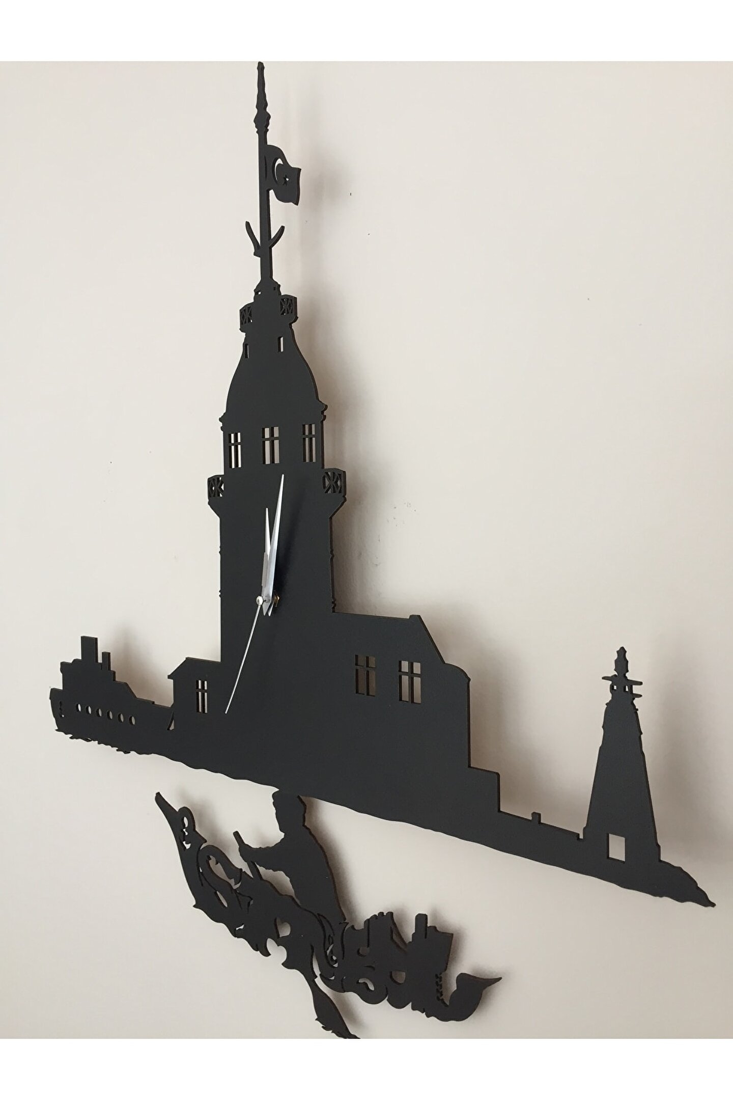 ; Goodtime Kız Kulesi Dekoratif Sarkaçlı Duvar Saati ; Lütfen taklitlerden kaçınınız. Saatin markası "goodtime" dır. ; Ürün özellikleri: ; - 1. Kalite Ahşap Mdf Malzemedenüretilmiştir. ; - Ürün tamamen el yapımıdır. (handmade) ; - 2 adet AA pil ile çalışır.- 1 adet pil, saati çalıştırır; diğer pilsarkacı hareket ettirir. ; - Her saniyede “İstanbul yazılı kayık”sağa sola hareket eder. ; - Mekanizması yüksek kaliteli sessiz(quartz) çalışan akar saattir. ; - Saat üzerindeki akrep, yelkovan vesaniye metal malzemedir. ; - Montaj şekli: Duvar çivisi ; - Montaja hazır özel askı aparatı ile birçivi veya vidayla duvara kolayca sabitleyebilirsiniz. ; -Mutfak, oturma odası,çocuk odası,salon ve özel günlerinizde hediye olarak tercih edebileceğiniz dekoratif duvar saatidir. ; Ürün ebatları: ; Sarkaç Dahil Yükseklik: 49 cm ; Genişlik : 27 cm ; Derinlik : 4 cm ; Mdf Kalınlığı: 3 mm ;