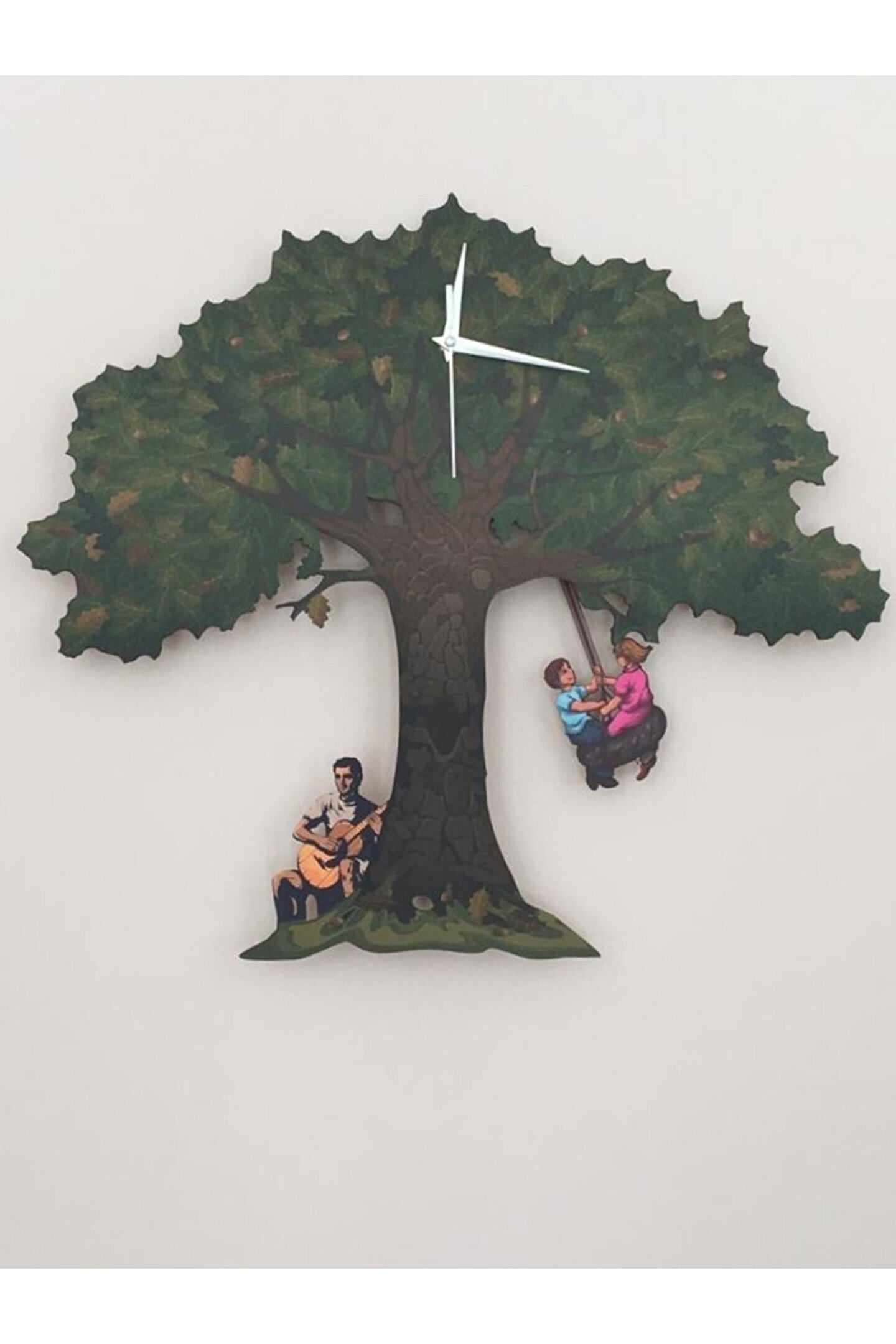 Goodtime Meşe Ağacı Dekoratif Sarkaçlı Duvar Saati ; Lütfen taklitlerden kaçınınız. Saatin markası "goodtime" dır. ; Ürün özellikleri: ; - 1. Kalite Ahşap Mdf Malzemeden üretilmiştir. ; - Ürün tamamen el yapımı (hand made) olup,yüksek kaliteli baskı ile üretilmektedir. ; - 2 adet AA pil ile çalışır. ; - 1 adet pil, saati çalıştırır; diğer pil sarkacıhareket ettirir. ; - Her saniyede “salıncaktaki çocuklar” sağasola hareket eder. ; - Mekanizması yüksek kaliteli sessiz (quartz)çalışan akar saattir. ; - Saat üzerindeki akrep, yelkovan ve saniyemetal malzemedir. ; - Montaj şekli: Duvar çivisi ; - Montaja hazır özel askı aparatı ile bir çiviveya vidayla duvara kolayca sabitleyebilirsiniz. ; -Mutfak, oturma odası,çocuk odası,salon ve özel günlerinizde hediye olarak tercih edebileceğiniz dekoratif duvar saatidir. ; ; Ürün ebatları: ; Yükseklik: 46 cm ; Genişlik : 51 cm ; Derinlik : 4 cm ; Mdf Kalınlığı: 4 mm ;