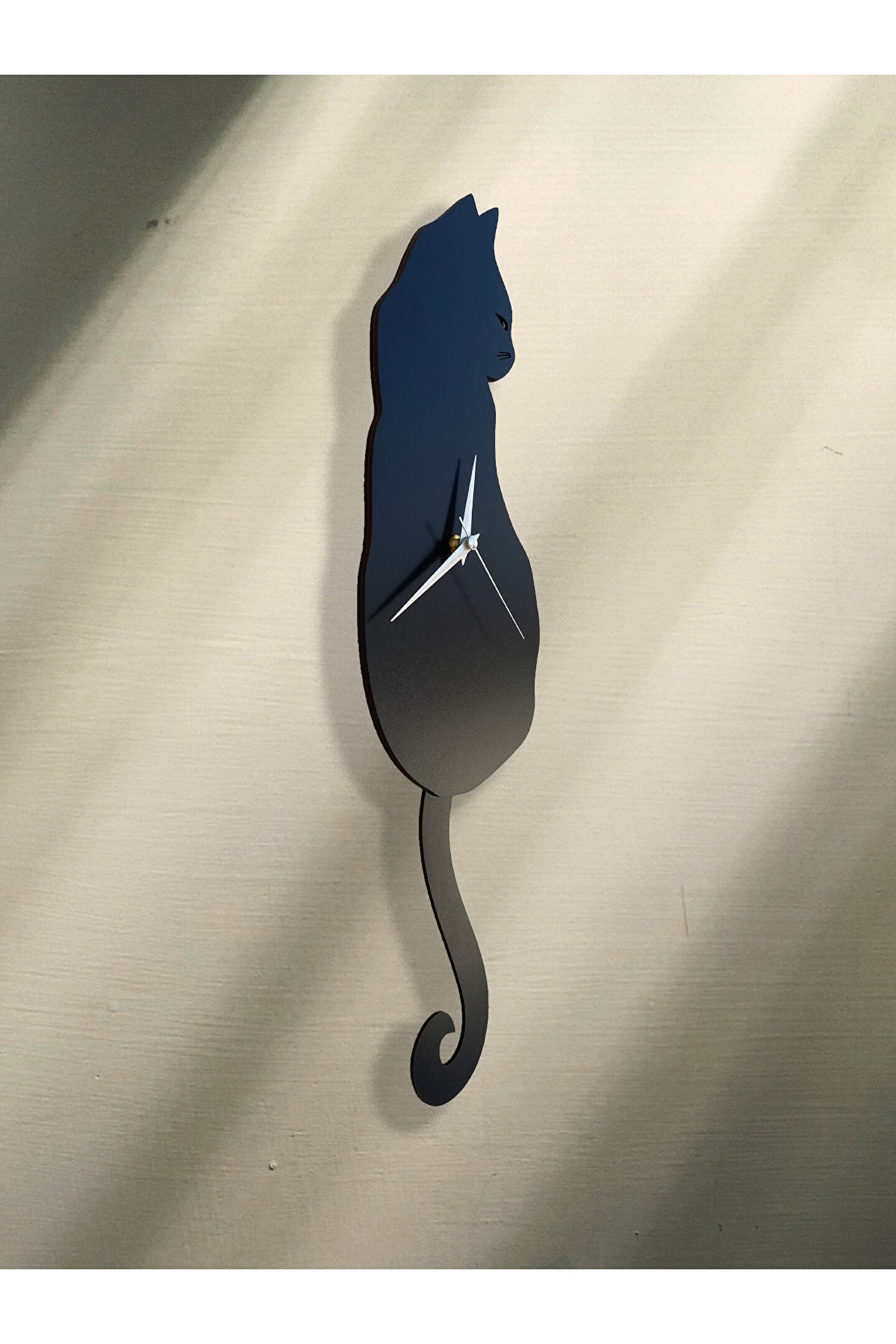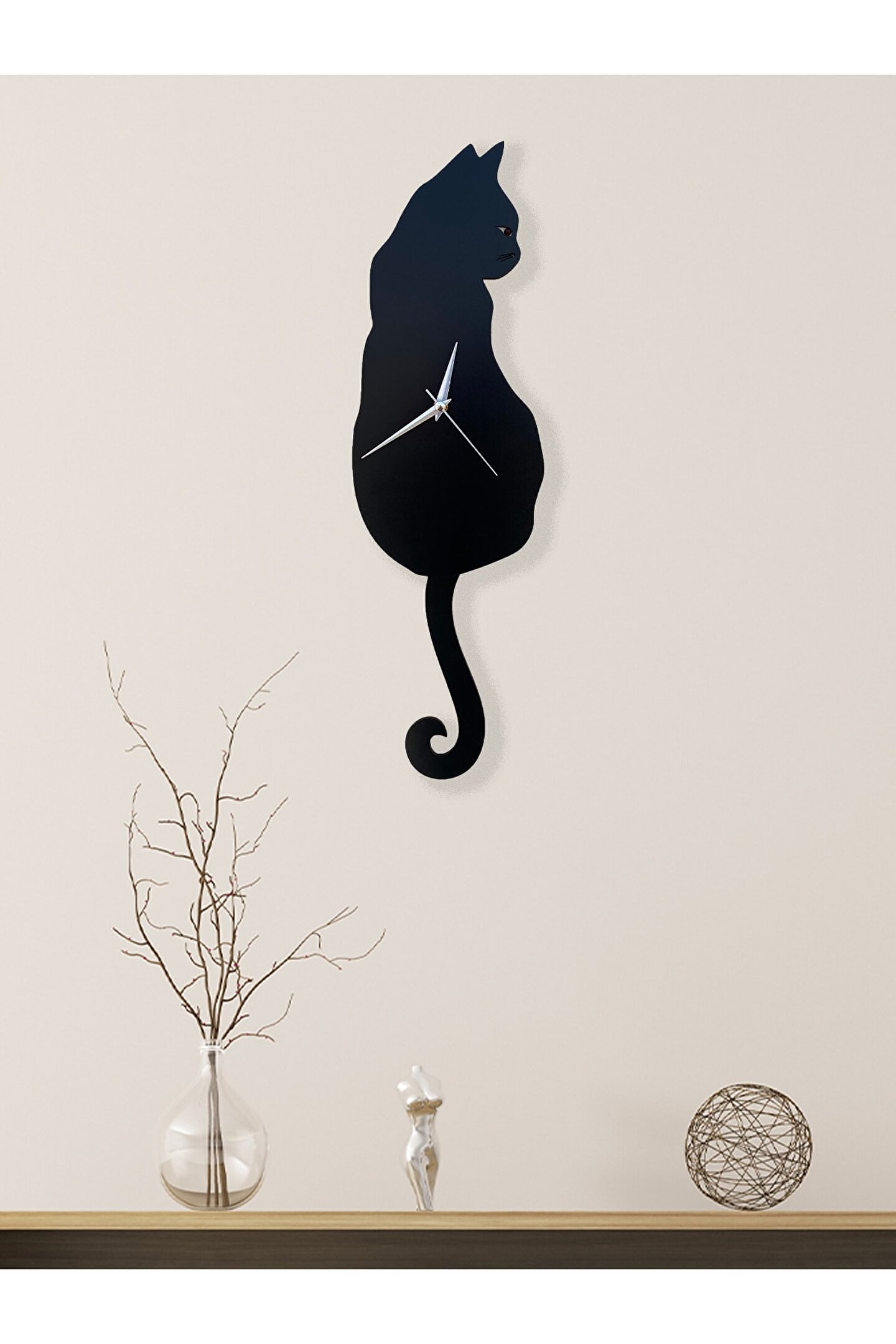 Goodtime Siyah Kedi Dekoratif Sarkaçlı Duvar Saati ; Lütfen taklitlerden kaçınınız. Saatin markası "goodtime" dır. ; Ürün özellikleri: ; - 1. Kalite Ahşap Mdf Malzemeden üretilmiştir. ; - Ürün tamamen el yapımıdır. (hand made) ; - 2 adet AA pil ile çalışır. ; - 1 adet pil, saati çalıştırır; diğer pil sarkacı hareketettirir. ; - Her saniyede “kuyruk” sağa sola hareketeder. ; - Kadranlı ve kadransız olmak üzere 2 çeşidi mevcuttur. ; - Mekanizması yüksek kaliteli sessiz (quartz) çalışanakar saattir. ; - Saat üzerindeki akrep, yelkovan ve saniye metalmalzemedir. ; - Montaj şekli: Duvar çivisi ; - Montaja hazır özel askı aparatı ile bir çivi veyavidayla duvara kolayca sabitleyebilirsiniz. ; -Mutfak, oturma odası,çocuk odası,salon ve özel günlerinizde hediye olarak tercih edebileceğiniz dekoratif duvar saatidir. ; Ürün ebatları: ; Sarkaç Dahil Yükseklik: 53 cm ; Genişlik : 16 cm ; Derinlik : 4 cm ; ;