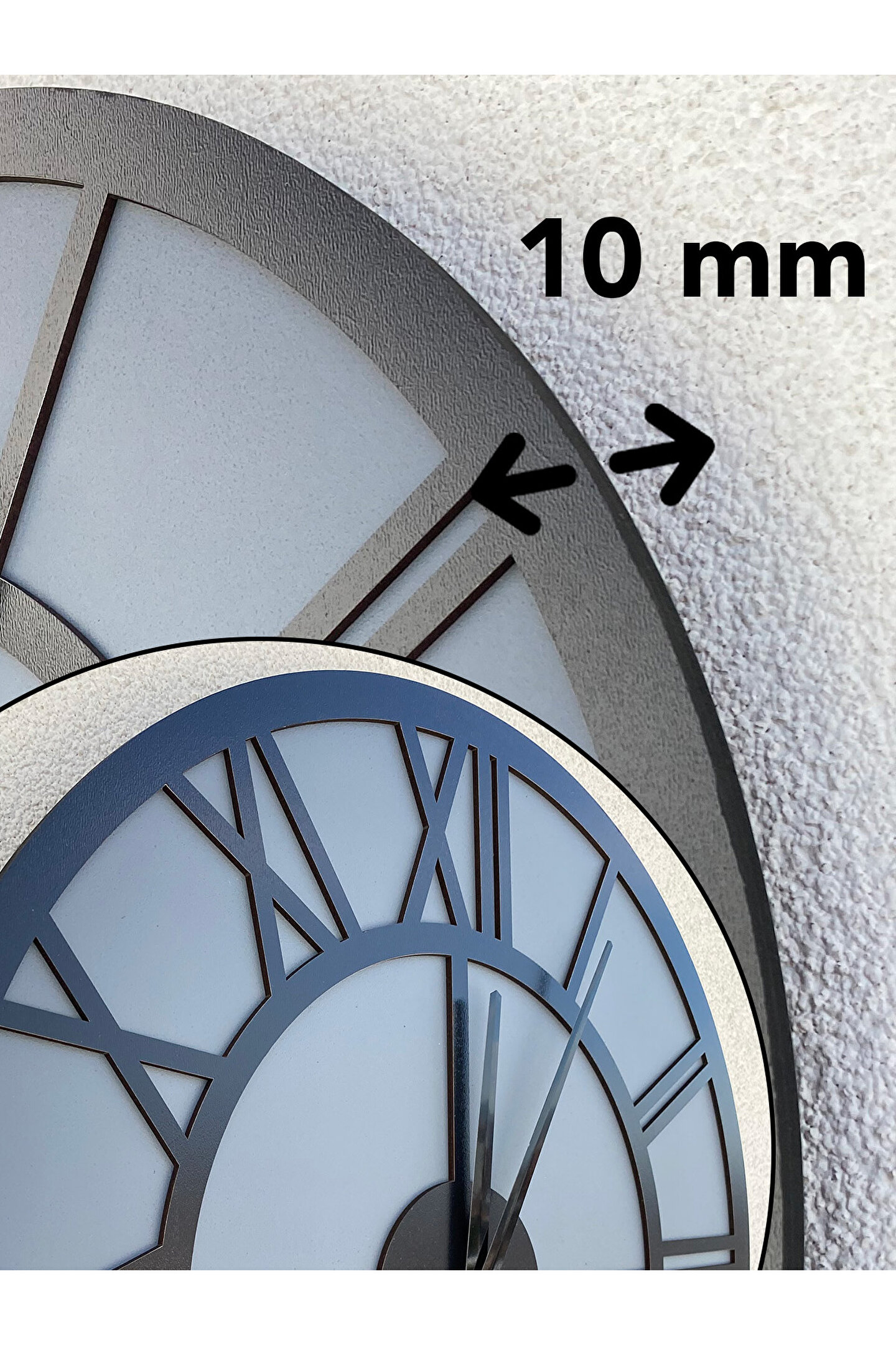 Goodtime Yuvarlak Gümüş Dekoratif Duvar Saati ; Ürün özellikleri: ; - 1. Kalite Ahşap Mdf Malzemeden üretilmiştir. ; - Ürün tamamen el yapımı (hand made) ve elboyaması ile üretilmektedir. ; - 1 adet AA pil ile çalışır. ; - Mekanizması yüksek kaliteli sessiz (quartz)çalışan akar saattir. ; - Saat üzerindeki akrep ve yelkovan metalmalzemedir ; - Montaj şekli: Duvar çivisi ; - Montaja hazır özel askı aparatı ile bir çiviveya vidayla duvara kolayca sabitleyebilirsiniz. ; -Mutfak, oturma odası,çocuk odası,salon ve özel günlerinizde hediye olarak tercih edebileceğiniz dekoratif duvar saatidir. ; Ürün ebatları: ; Saat Çapı : 50 cm dir. ; Derinlik : 5 cm ; Mdf Kalınlığı: 7 mm ;