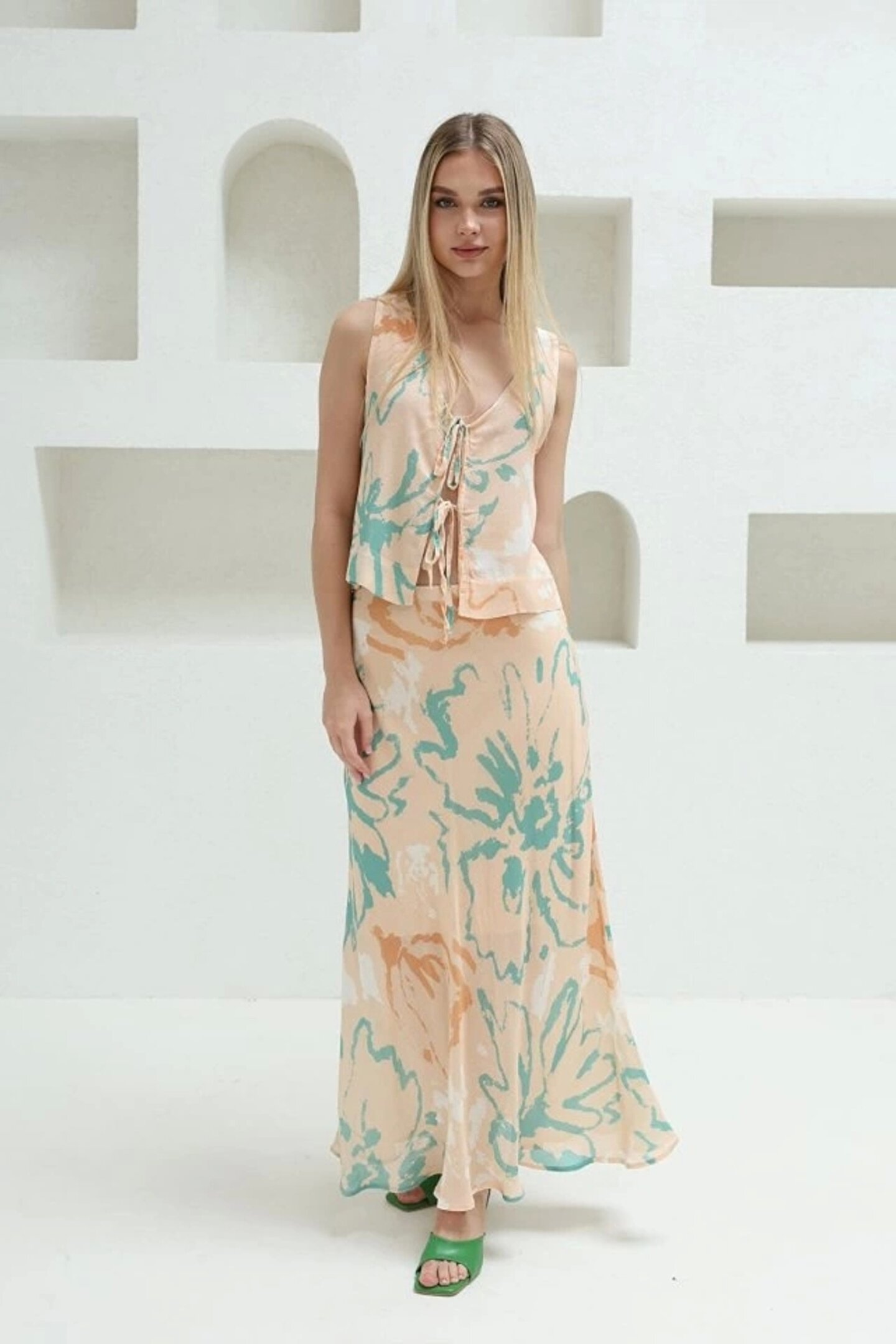 goopall Bağcıklı Bluzlu Etek Takım Pudra