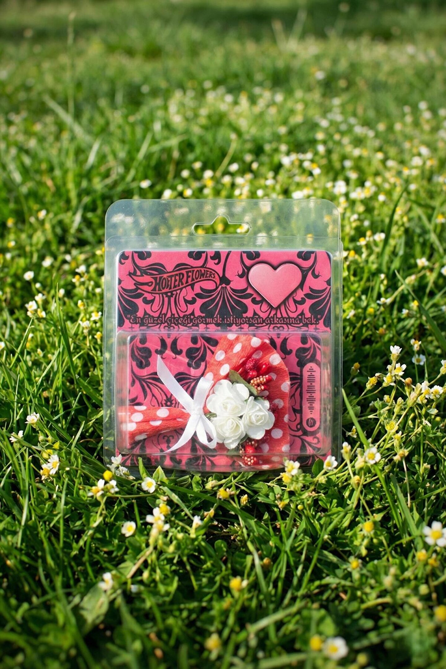 Gorgeous tarafından özel olarak tasarlanan bu koleksiyonluk aksesuar kırmızı tonlarının hâkim olduğu, özenle hazırlanmış yapay çiçek buketi ve şık süslemeleriyle dikkat çeker.; Ürün, görsel bütünlüğü bozulmadan sunulabilmesi için şeffaf koruma kutusu içerisinde ambalajlanmıştır.; Hem hediye olarak doğrudan sunulabilir hem de dekoratif amaçlı estetik bir tamamlayıcı unsur olarak kullanılabilir.;