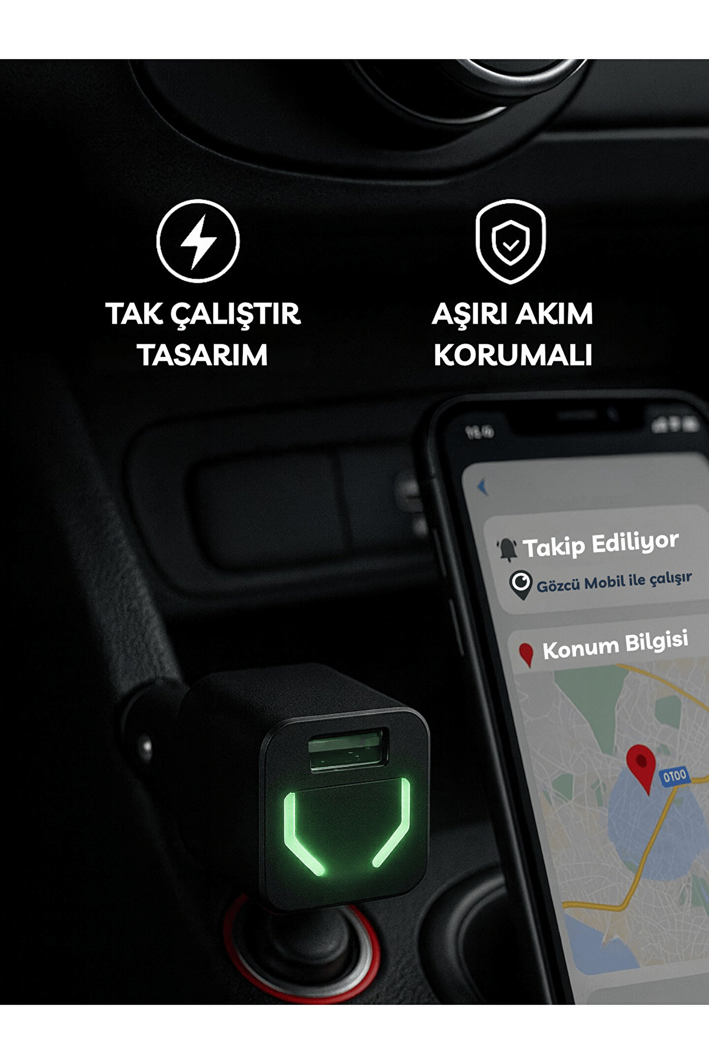 Aracınızın güvenliğini ve nerede olduğunu anbean bilmek hiç bu kadar kolay olmamıştı! Gözcü Çakmaklık, sıradan bir araç şarj aleti görünümünde, montaj veya kablo gerektirmeyen, yeni nesil bir GPS takip cihazıdır. Sadece aracınızın çakmaklık girişine takın ve Gözcü Mobil uygulaması üzerinden anında takip etmeye başlayın.