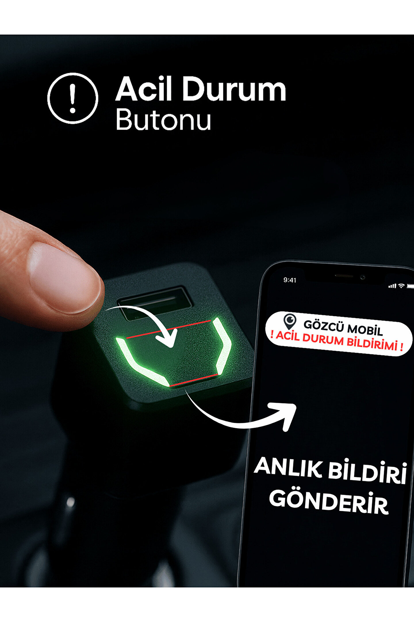 Acil Durum (SOS) Butonu:Cihaz üzerindeki butona tek dokunuşla, acil durum bildirimini ve anlık konumunuzu uygulamaya anında iletin.
