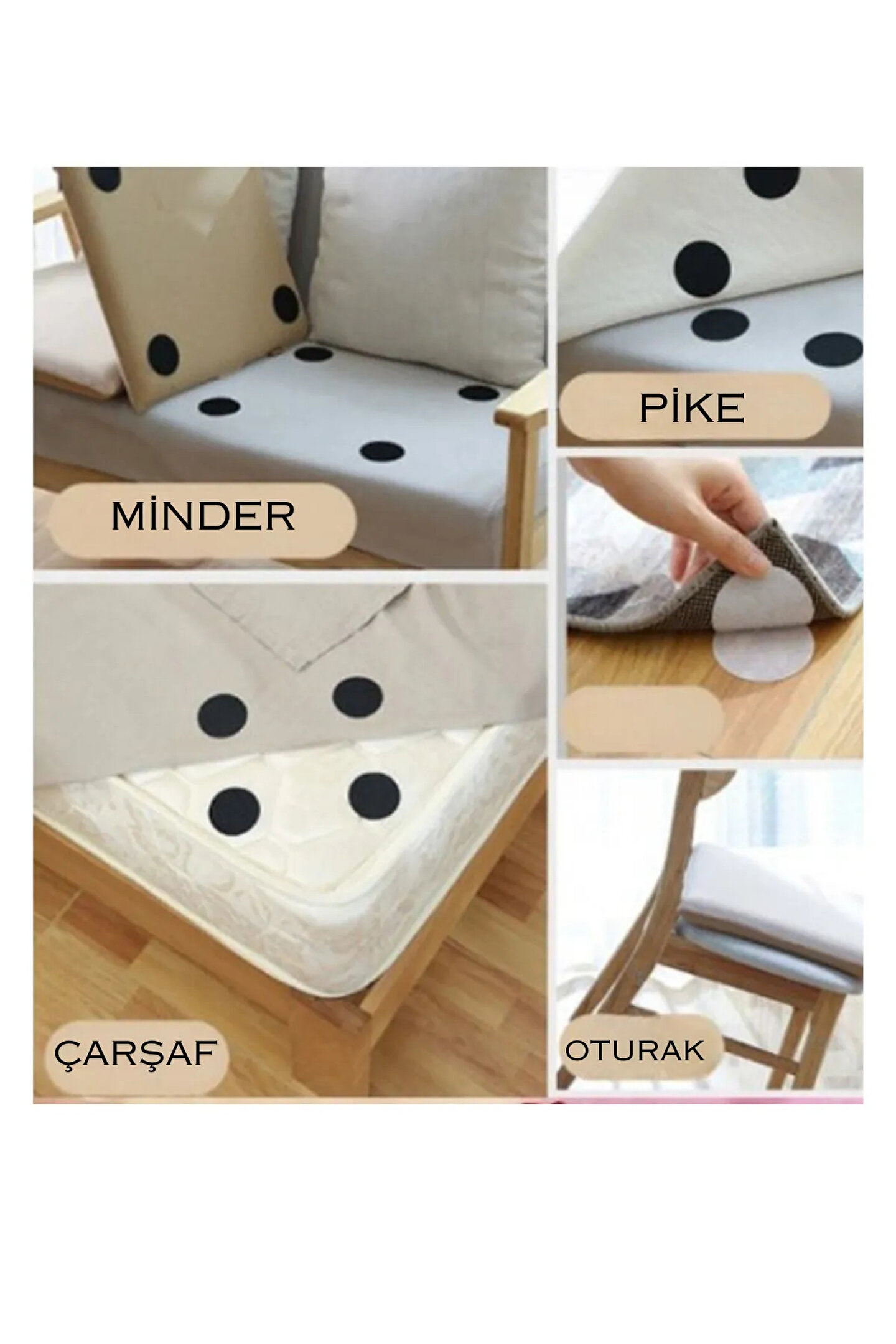 Halı Kilim Kaydırmaz Cırt 10 Set, halı ve kilimlerinizi sabit tutmak için kullanılan pratik ve dayanıklı bir çözümdür.; İşte bu ürünün özellikleri ve kullanımı hakkında bilgi: Kullanım Kolaylığı: Çıkarılabilir, yıkanabilir ve tekrar kullanılabilir halı kaydırmaz cırtlar, kullanımı kolay bir yapıya sahiptir.; Halınızın köşelerine veya kenarlarına kolayca yerleştirilebilir.; Dayanıklı Malzeme: Dayanıklı yapılarıyla, halı ve kilimlerinizi sabit tutmak için uzun ömürlü bir çözüm sunarlar.; Herhangi bir kilimin üzerine kolayca uygulanabilirler.; Kaymayı ve Kıvrılmış Köşeleri Önleme: Halı kaydırmaz cırtlar, halı veya kilimlerinizi sabit tutarak kaymayı ve kıvrılmış köşelerin hareketlerini önler.; Böylece halılarınız düzgün ve güvenli bir şekilde yerlerinde kalır.; Zararsız ve Temiz: Zemine zarar vermez ve yapışkan bir kalıntı bırakmazlar.; Bu sayede halılarınızı veya zemininizi korurlar ve temiz bir görünüm sağlarlar.; Çeşitli Kullanım Alanları: Büyük boyutları sayesinde büyük halılar için idealdir, ancak küçük halıların kaymasını önlemek için de kullanılabilirler.; Evde, ofiste veya herhangi bir alanda kullanılabilirler.; Boyut: Her bir cırt 5 cm boyutundadır.; Halı Kilim Kaydırmaz Cırt 10 Set, halılarınızı ve kilimlerinizi sabit tutmak için güvenilir ve pratik bir çözüm sunar.; Dayanıklı malzemeleri ve kullanım kolaylığıyla, halılarınızı düzgün ve güvenli bir şekilde yerinde tutarlar.