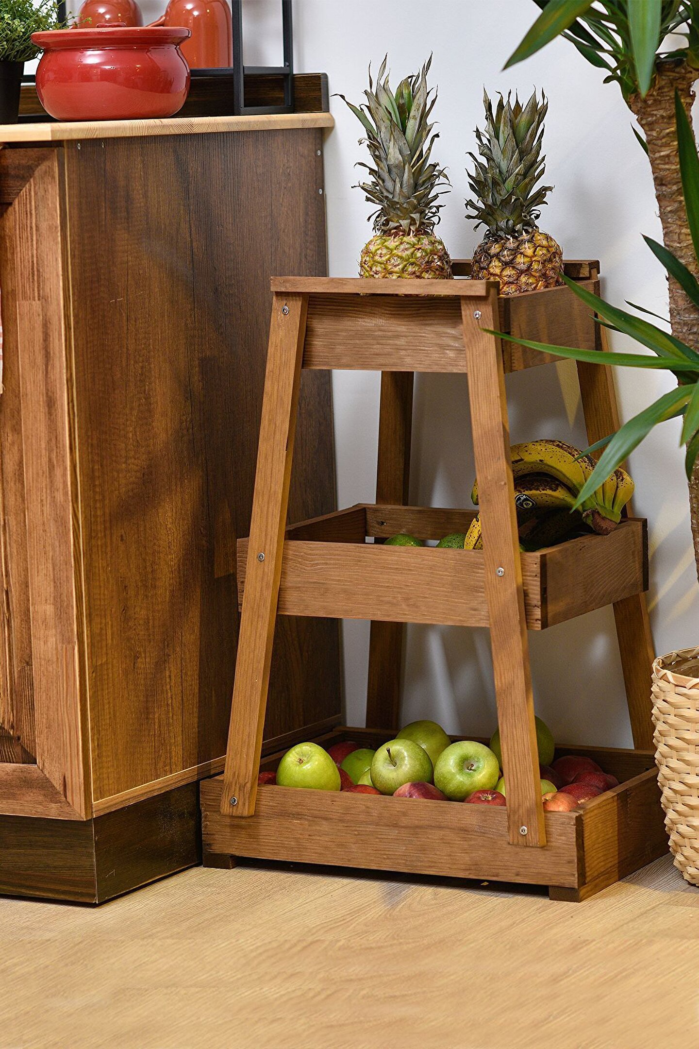 3 Katlı Ahşap Sebzelik Meyvelik Mutfak Banyo Düzenleyici Ceviz