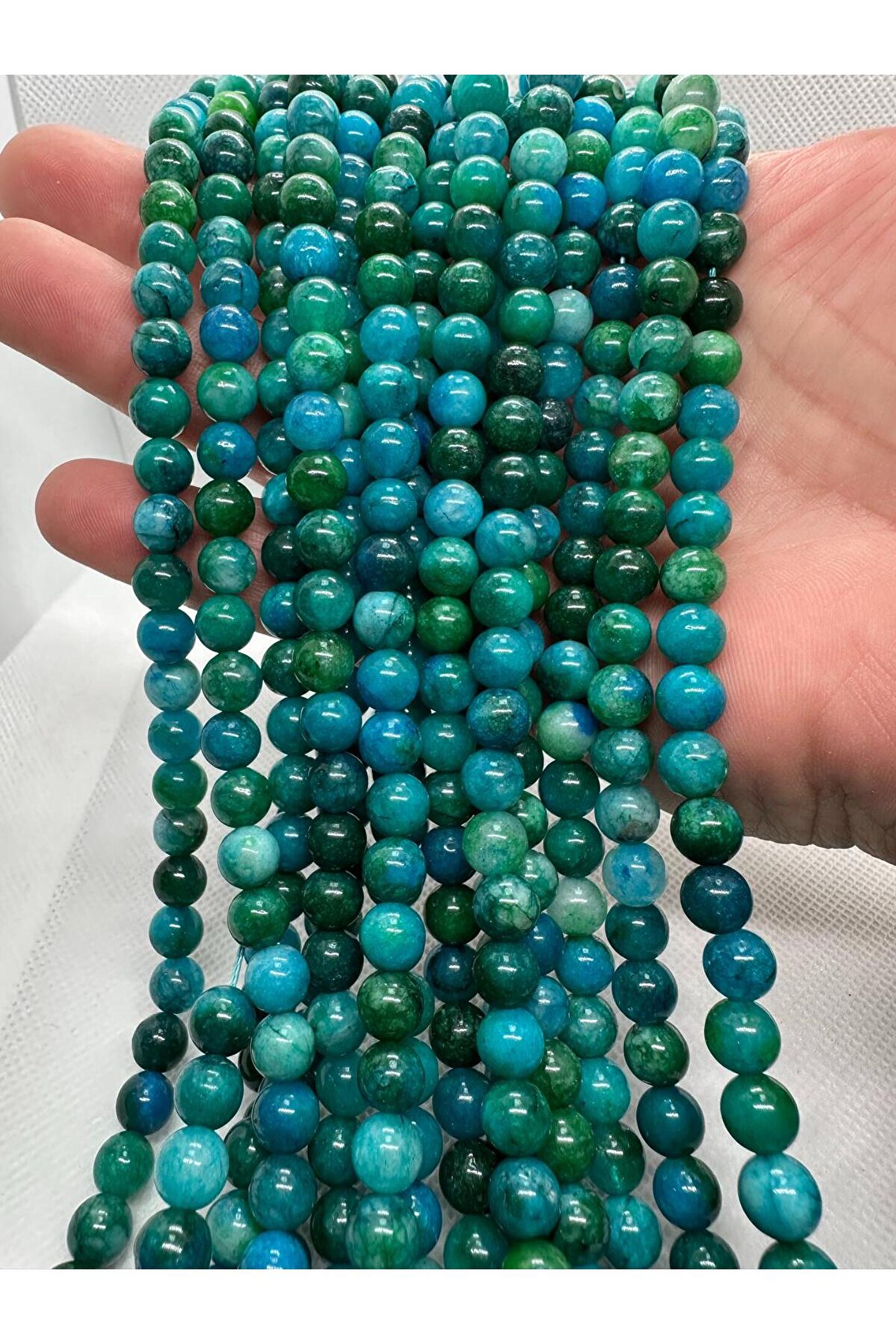 - Doğal taş apatit, her bir parçası benzersiz desenlere sahip olan bu dizide, doğal güzelliği ve zarafeti yansıtır.; - 8mm çapındaki bu taşlar, takı yapımında sıkça tercih edilir; kolye uçları, bilezikler veya yüzükler gibi çeşitli aksesuar tasarımlarına uyum sağlar.; - Bir dizi halinde sunulan bu ürün, koleksiyonunuza ekleyebileceğiniz birden fazla parça ile çeşitlilik kazandırır.; - Apatit taşı, hem şıklığı hem de doğal taşların sunduğu huzuru bir arada sunarak her türlü kıyafetle uyum sağlar.