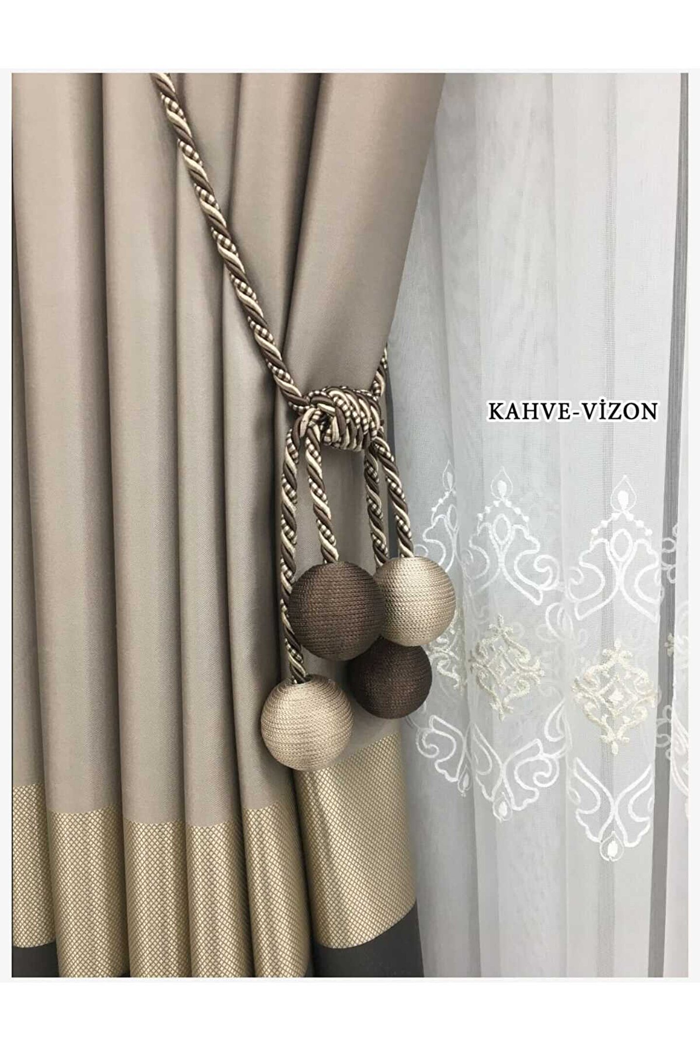 Polyester malzeme kullanımı sayesinde uzun ömürlü ve dayanıklı bir yapıya sahiptir; Perde bağı aksesuar tipi ile kolayca takılabilir ve çıkarılabilir, pratik kullanım sunar; Vizon renk kombinasyonu, modern ve şık bir görünüm kazandırarak dekorasyonunuza estetik bir dokunuş ekler;