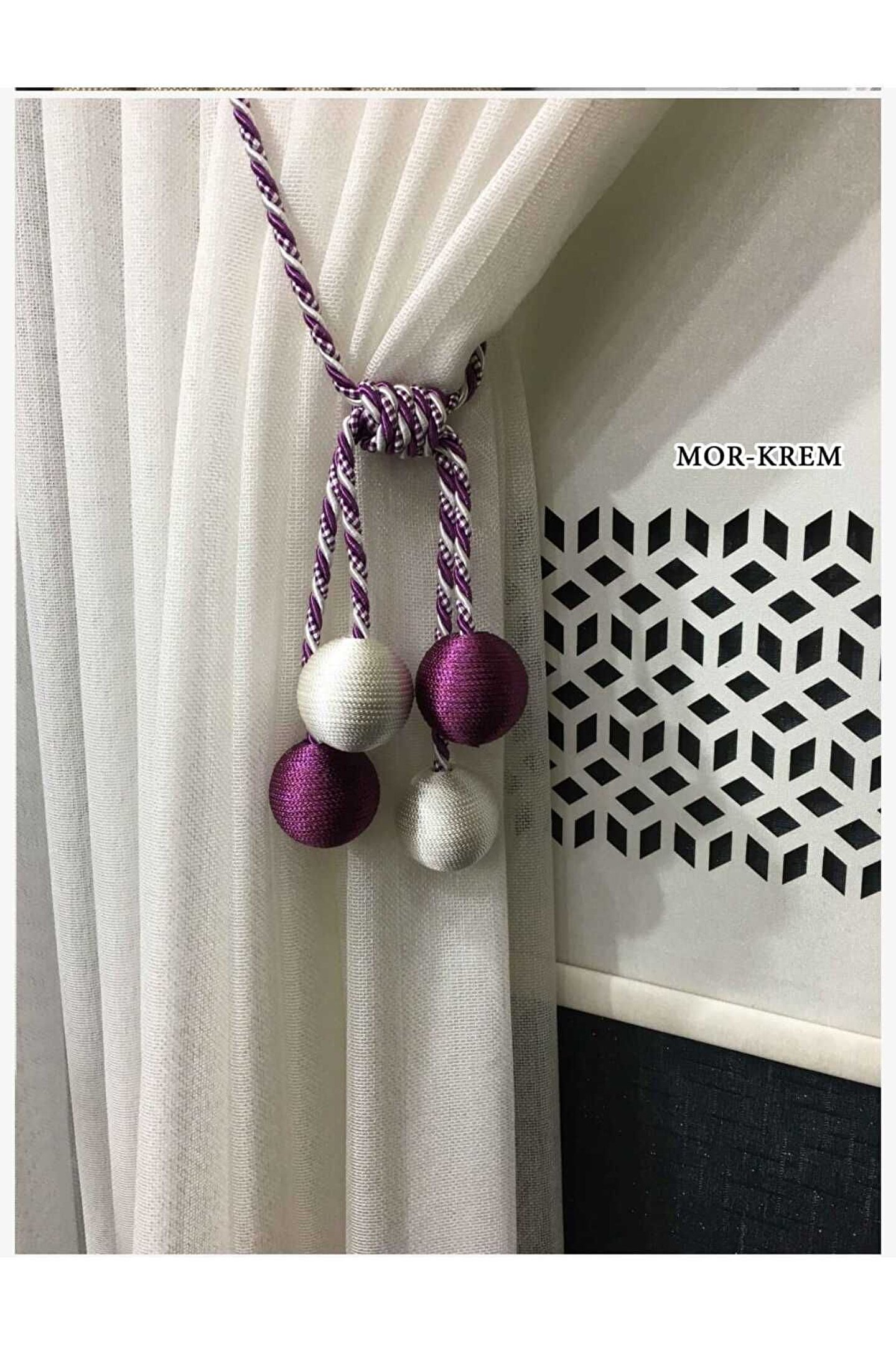 - İki adet mor ve krem renkli perde bağı, evinizin dekorasyonuna şıklık katar; - Polyester materyal kullanımı sayesinde uzun ömürlü ve dayanıklı bir yapı sunar; - Perde aksesuarı olarak tasarlanmış bu ürün, perdelerinizi kolayca sabitlemenize olanak tanır;
