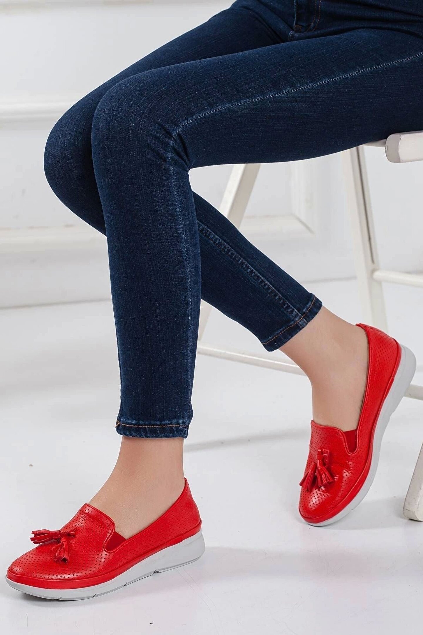 Hakiki Deri Kadın Günlük Ayakkabı Kırmızı B0001