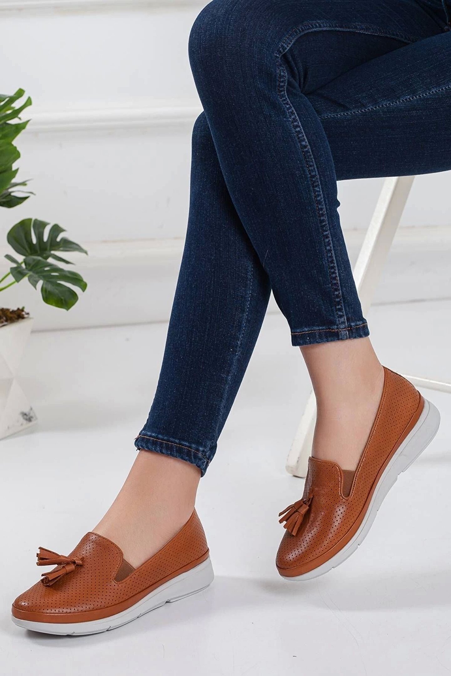 Hakiki Deri Kadın Günlük Ayakkabı Taba B0001