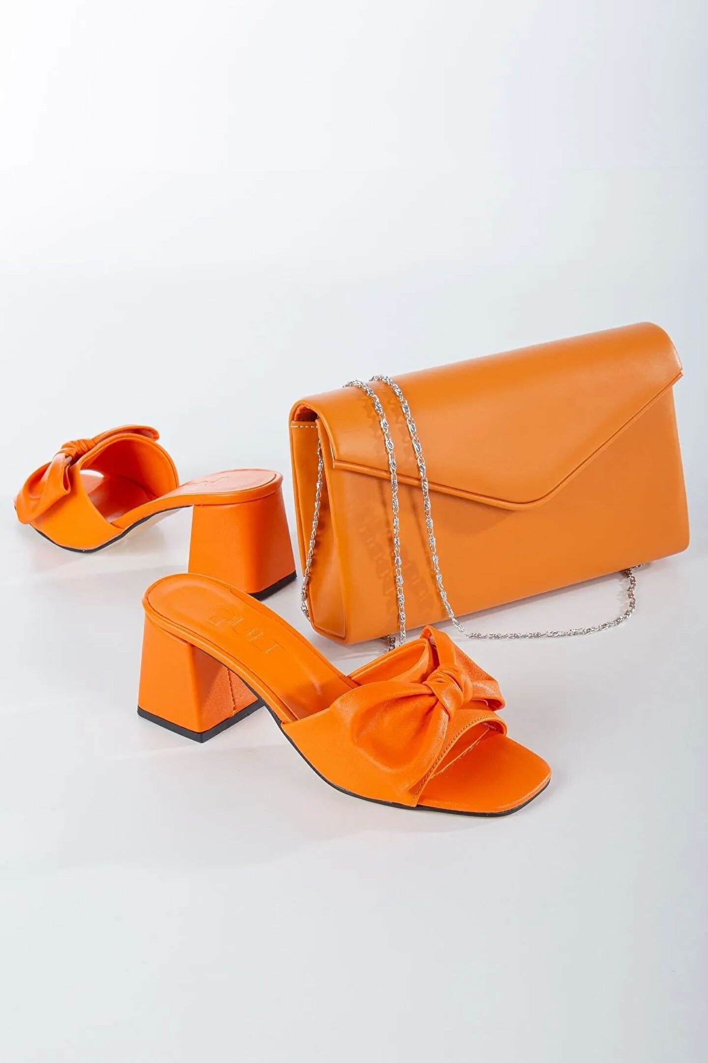 Kadın 5 Cm Kalın Topuklu Çanta Kombinli Terlik Takımı