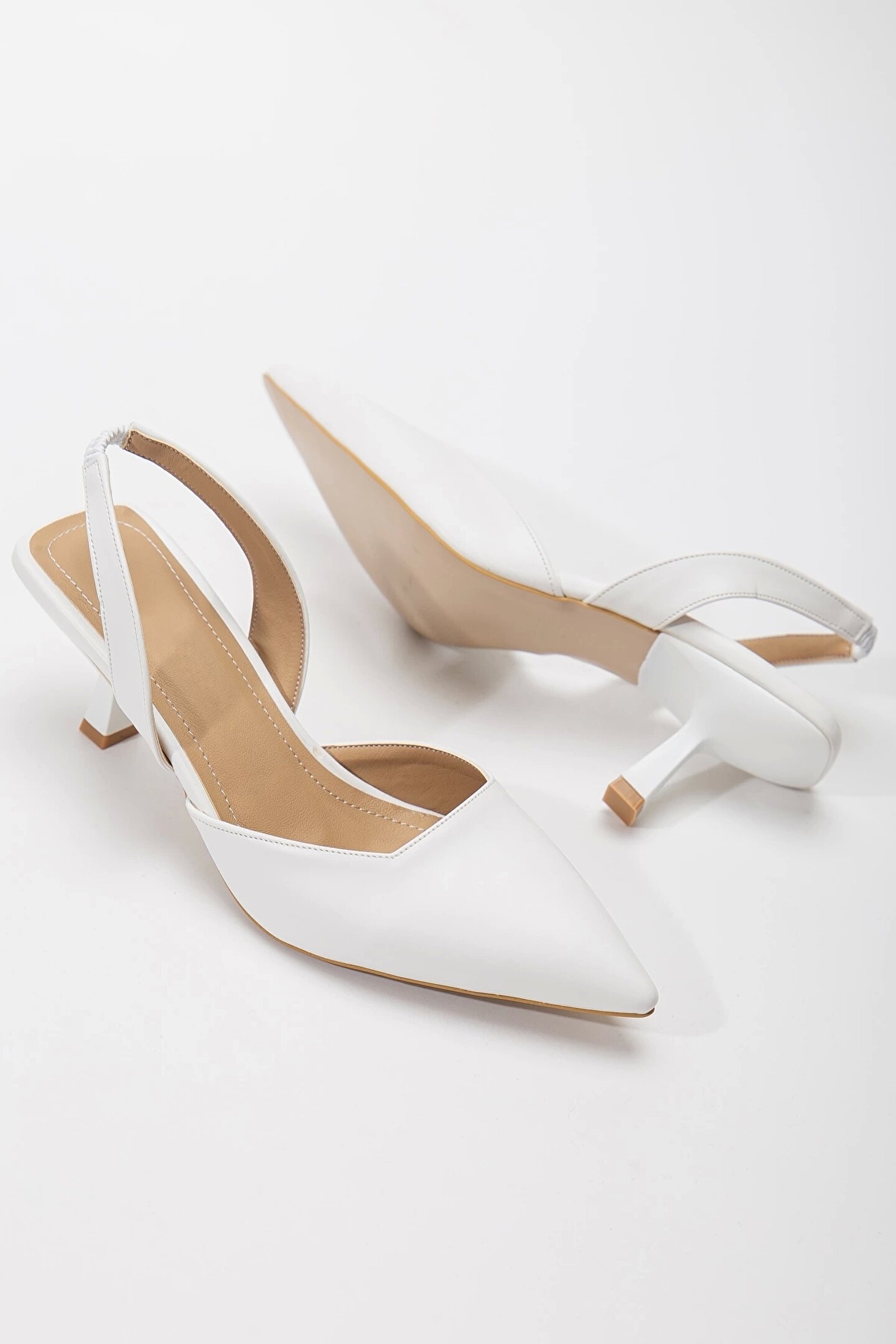 Kadın 5 Cm Özel Topuklu Sivri Ayakkabı Nişantaşı Beyaz