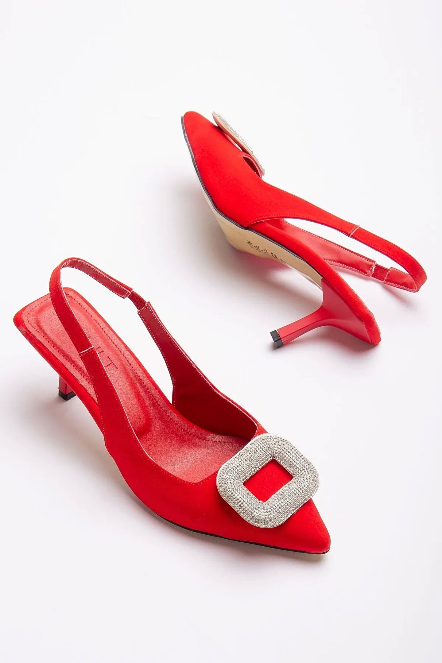 Kadın Altın Sedef Ince Topuklu Yazlık Taş Işlemeli Topuklu Ayakkabı