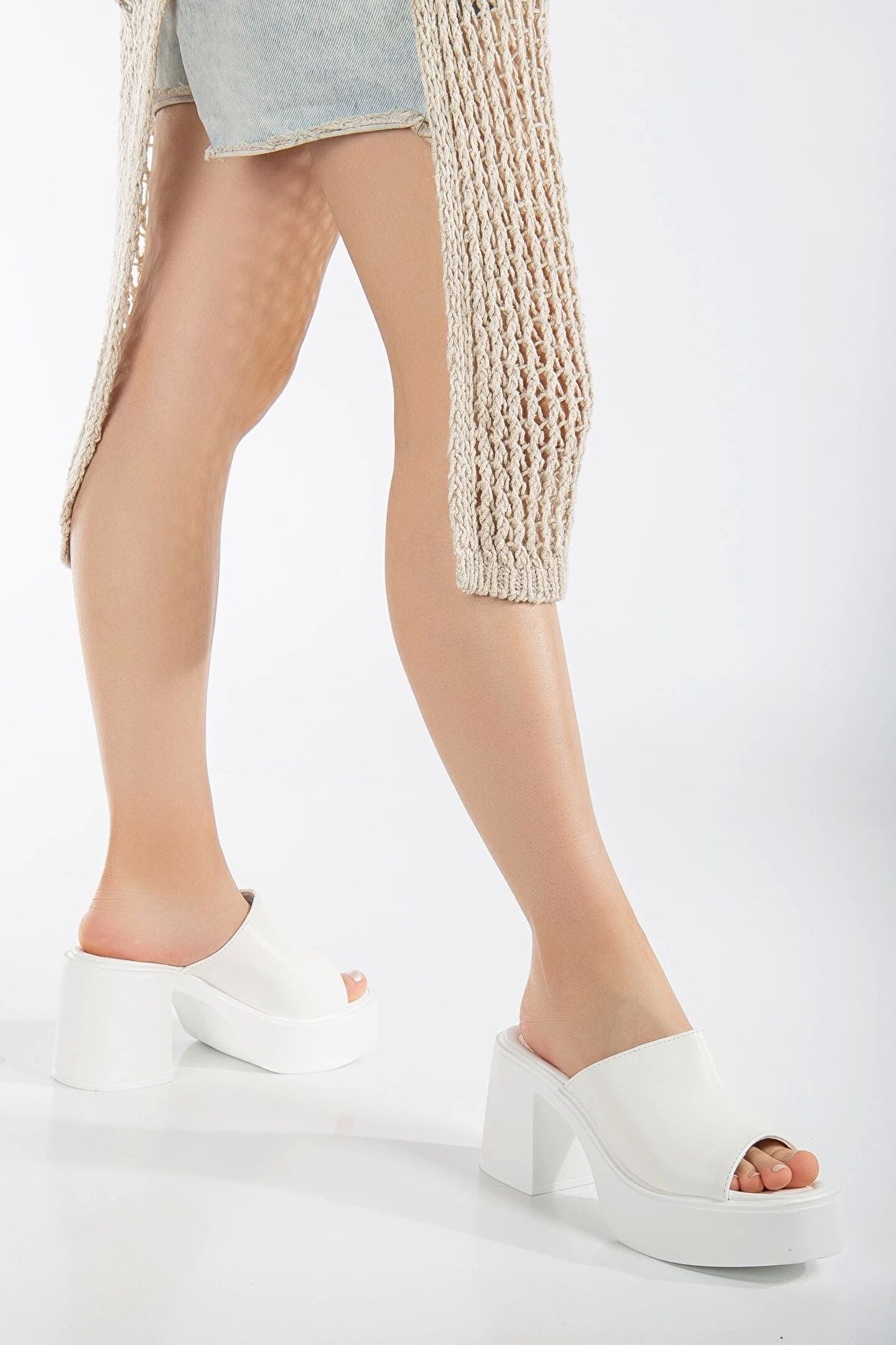 Kadın 8 cm Yazlık Düz Terlik Beyaz