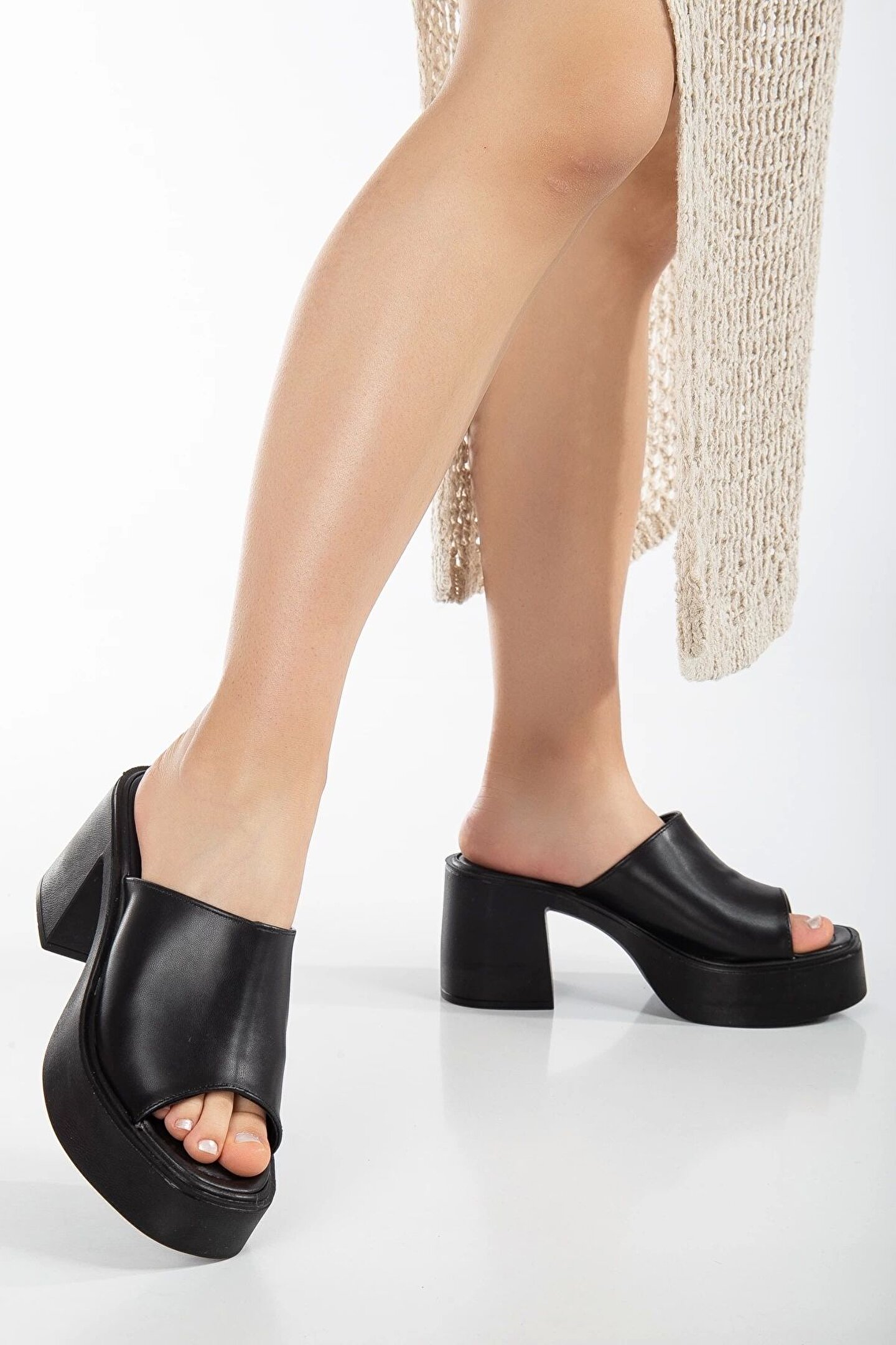 Kadın 8 cm Yazlık Düz Terlik Siyah