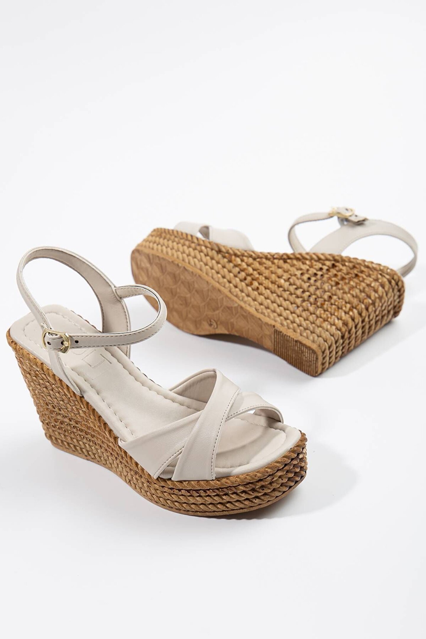 Kadın Dolgu Topuklu Çapraz Sandalet Bej