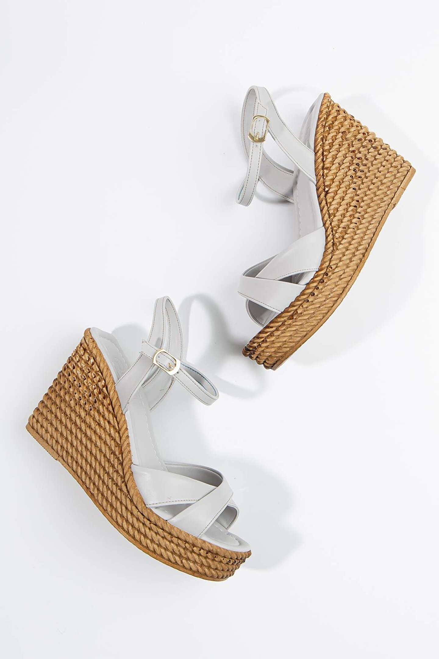 Kadın Dolgu Topuklu Çapraz Sandalet Gri