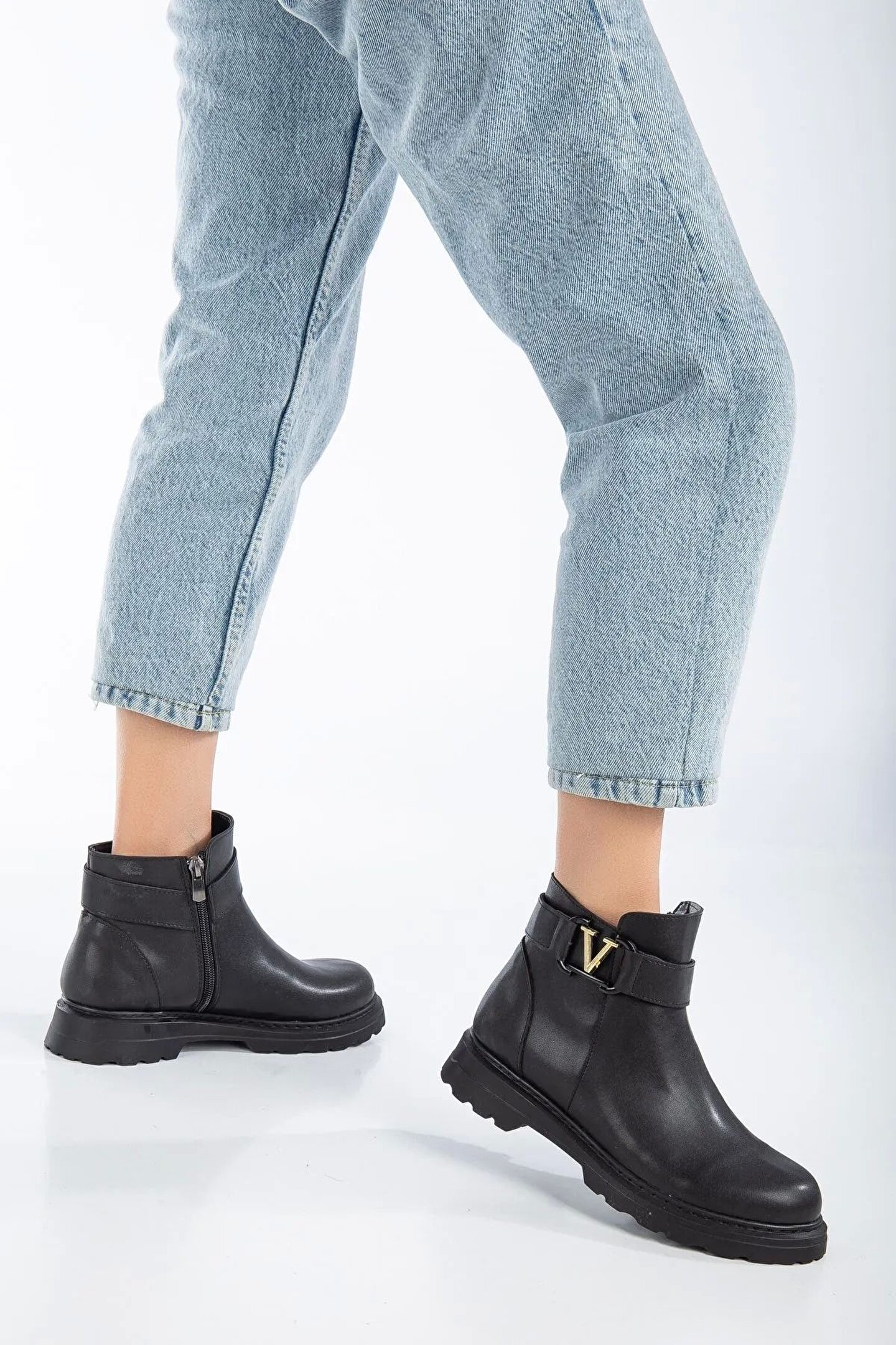 LUNA Fermuarlı Lastikli Ortopedik Taban TopukluKadın Bot ST - Siyah
