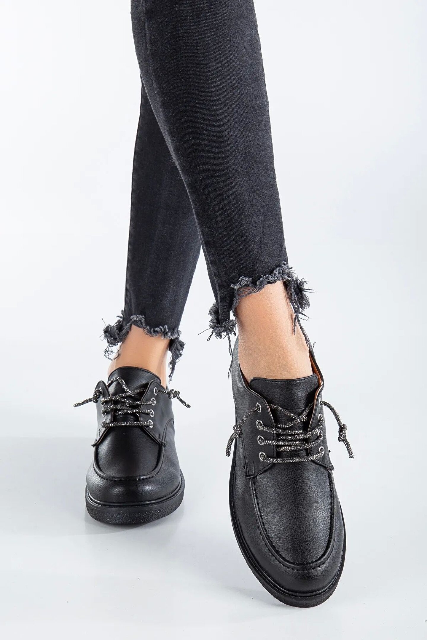 DINA Bağcıklı Fermuarlı Ortopedik Taban Kadın Sneaker Spor Ayakkabı CST - SiyahAltın