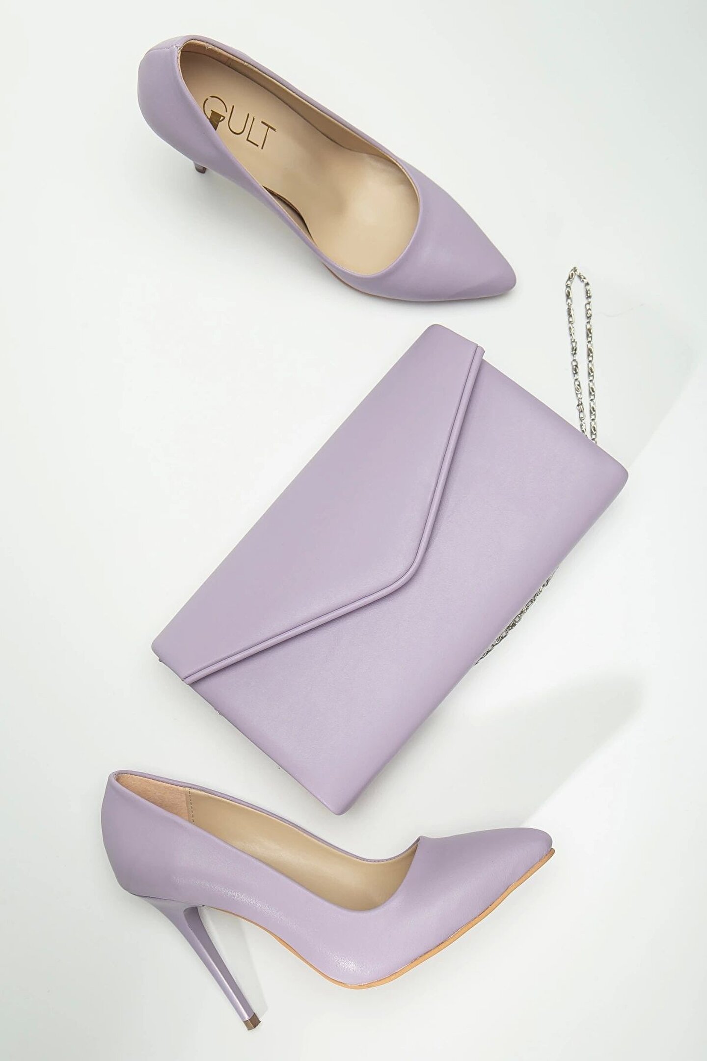 Kadın Ince Yüksek Topuklu Stiletto Ve Çanta Takımı Lila