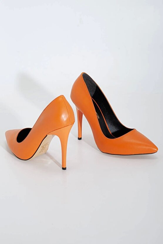 Kadın Ince Yüksek Topuklu Stiletto Ve Çanta Takımı Turuncu