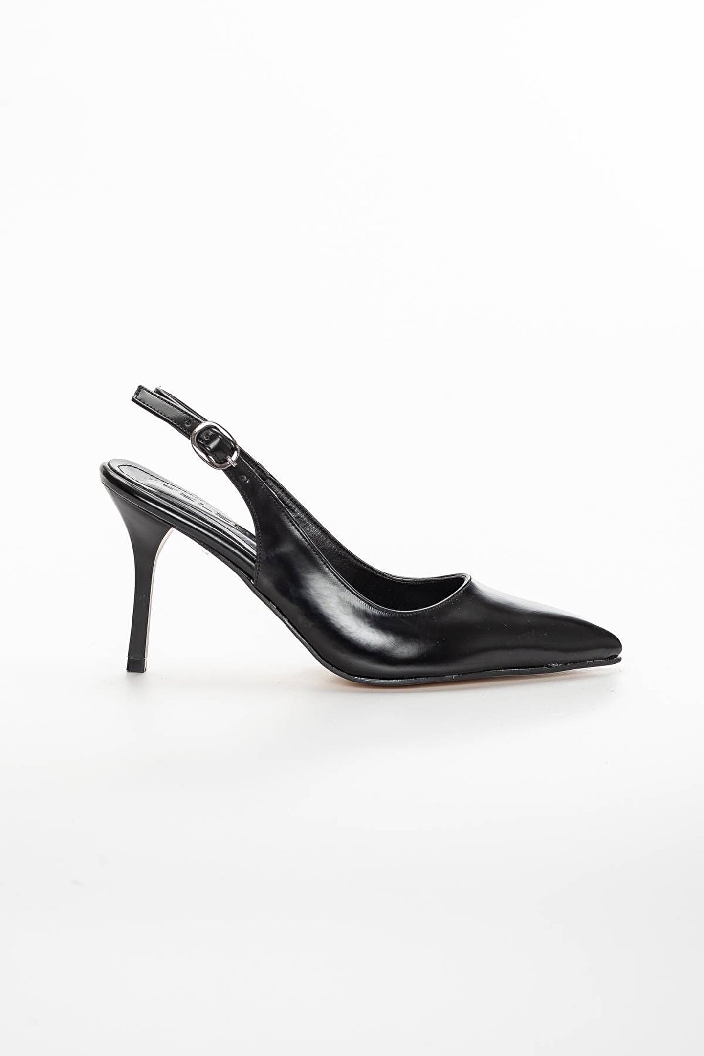 Kadın Şeffaf Tokalı Ince Yüksek Topuklu Ayakkabı Siyah Cilt