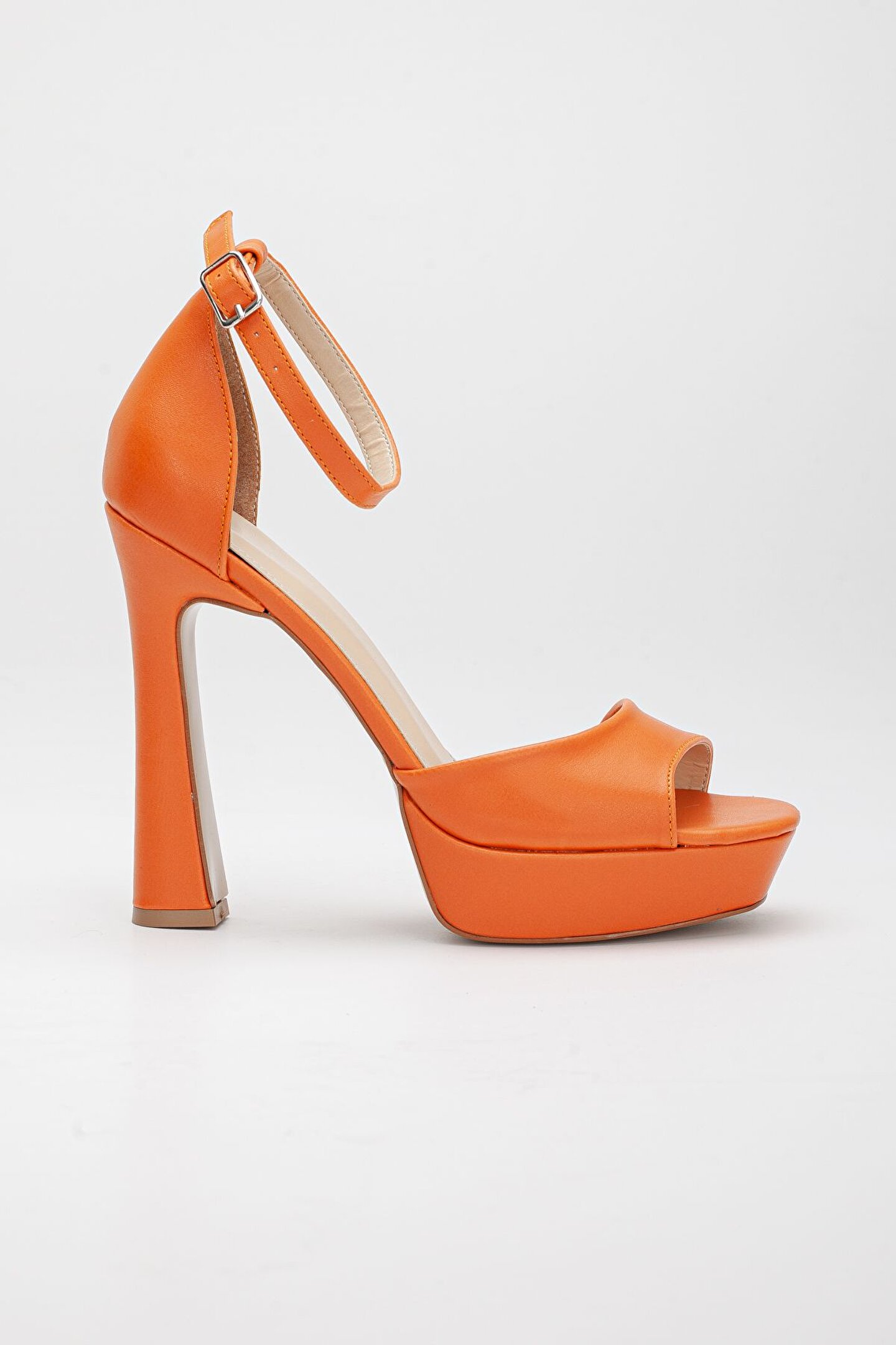Kadın Platform Tek Bant 12 Cm Özel Üretim Kaplama Ökçe Ayna Taban Turuncu