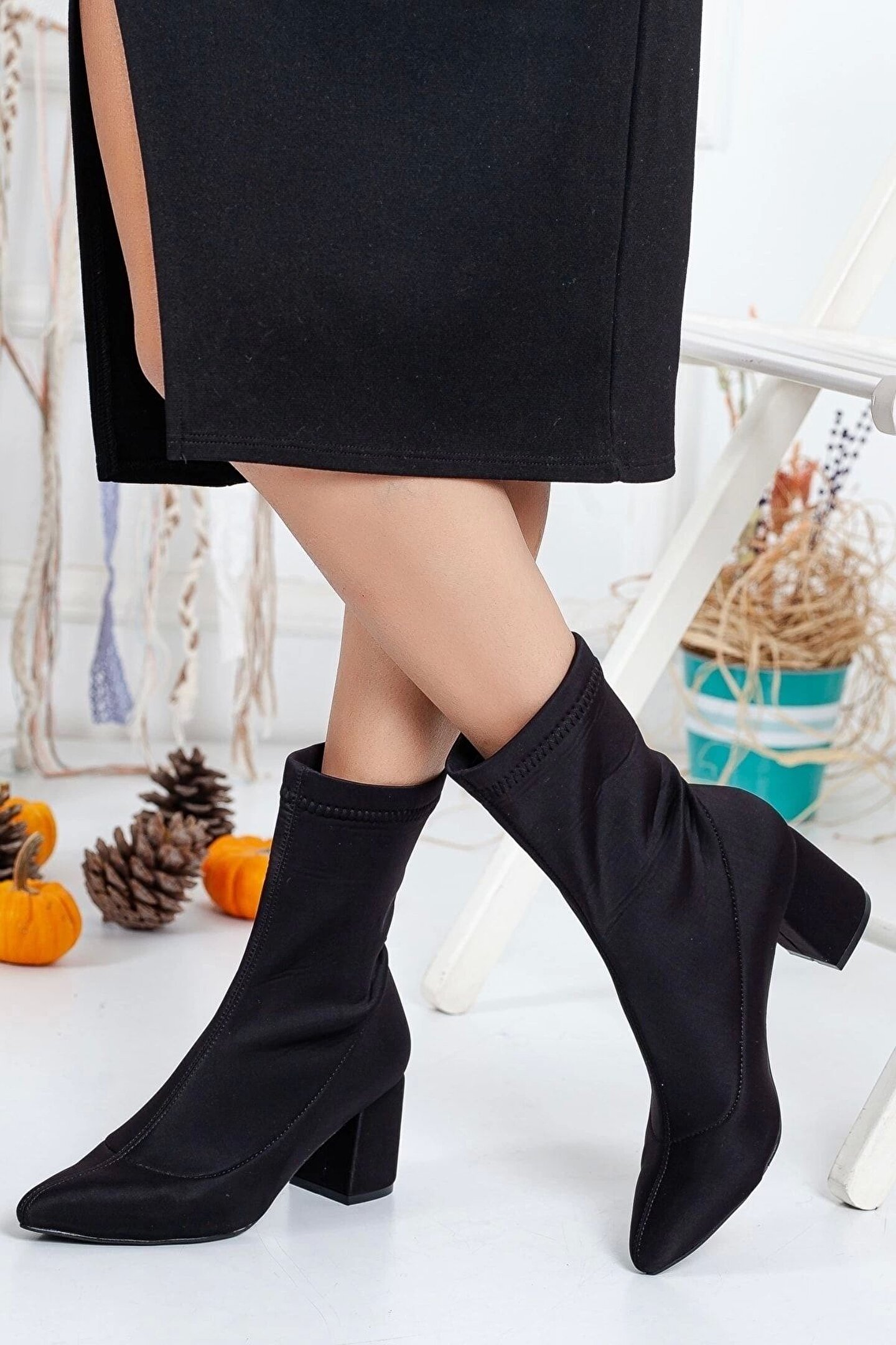 Kadın Siyah Dalgıç Çorap Bot Çizme