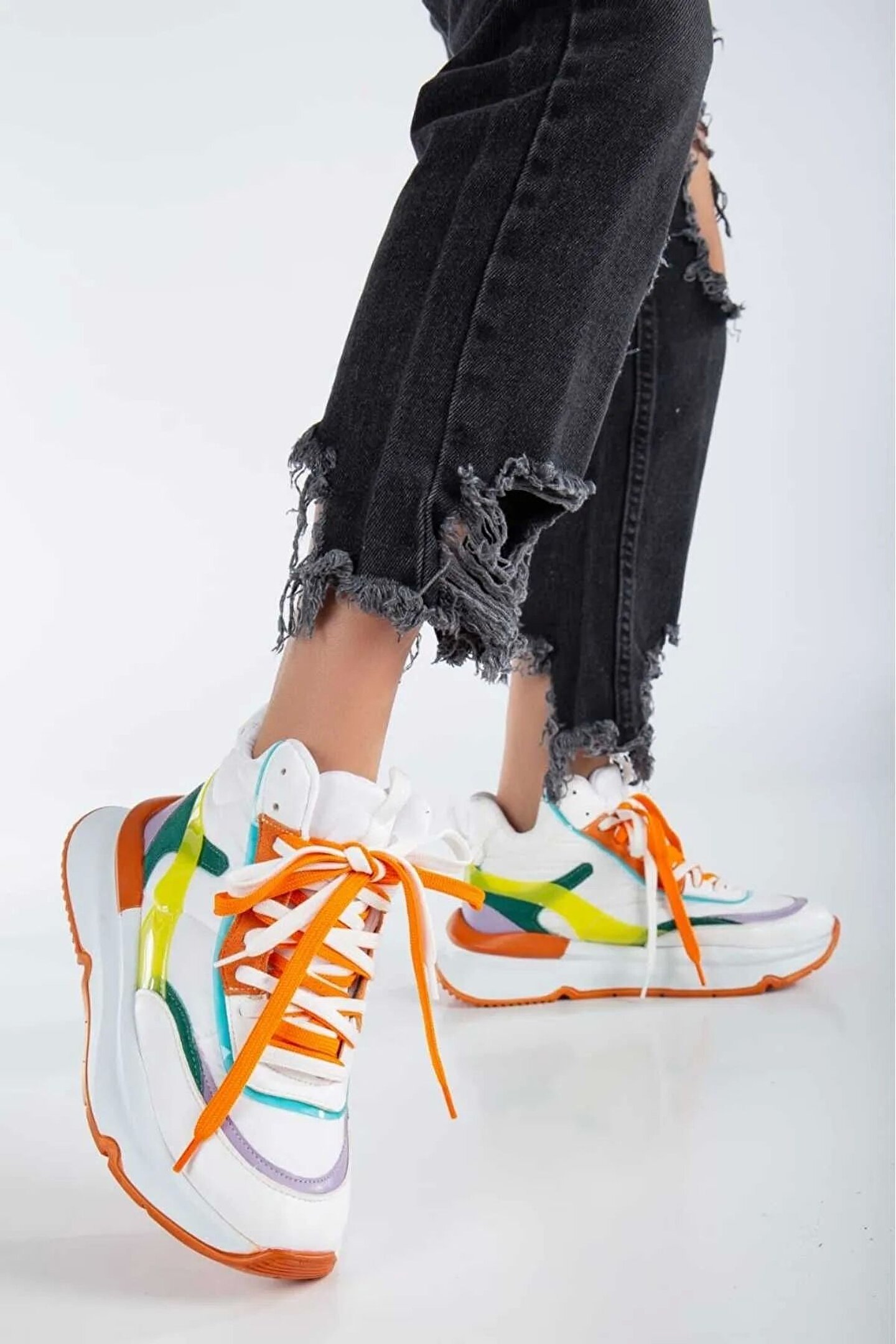 TOKYO Bağcıklı Ortopedik Taban Triko Detaylı Kadın Spor Ayakkabı TTT - TenTuruncu