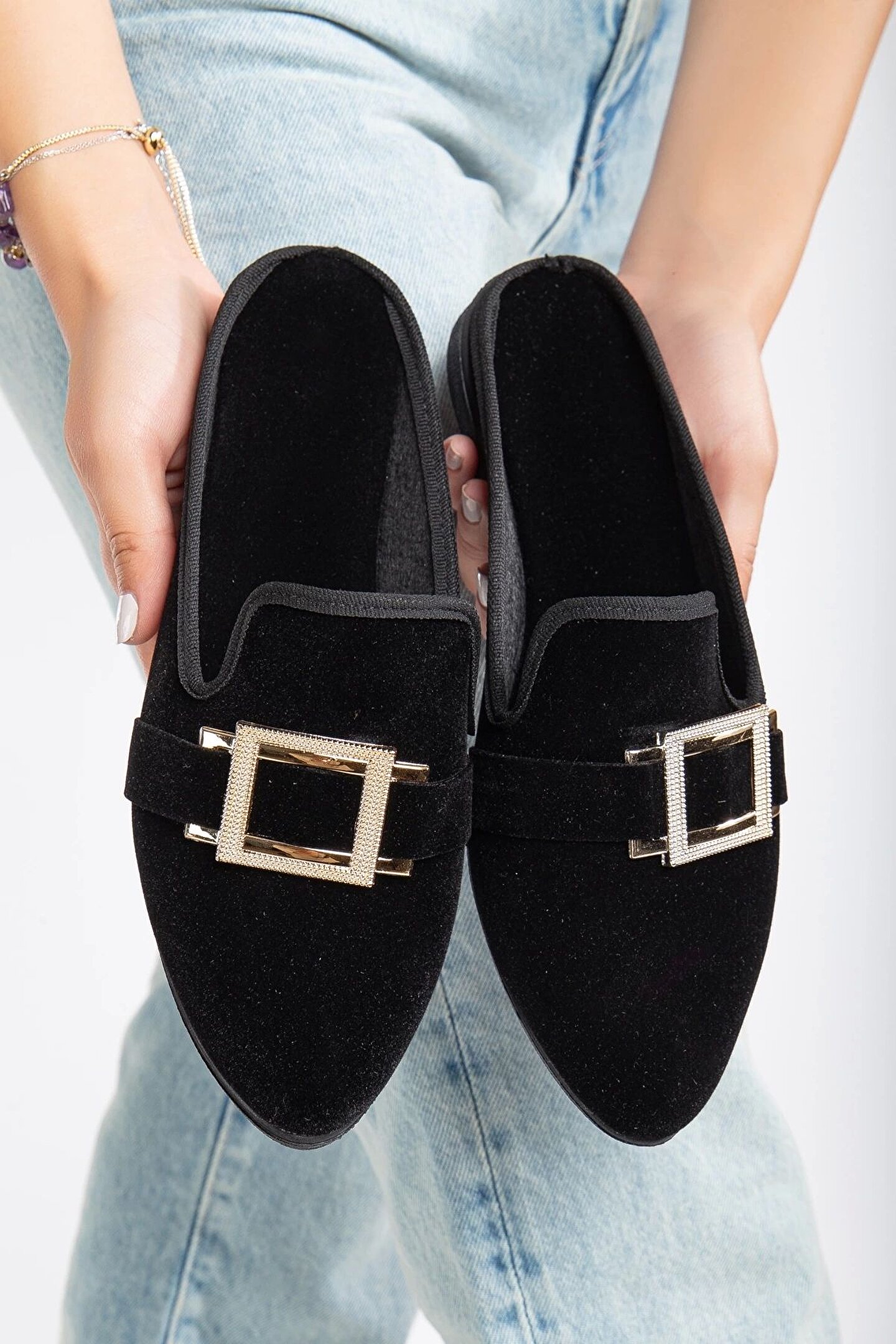 Kadın Taş Detaylı Şeffaf Terlik Siyah
