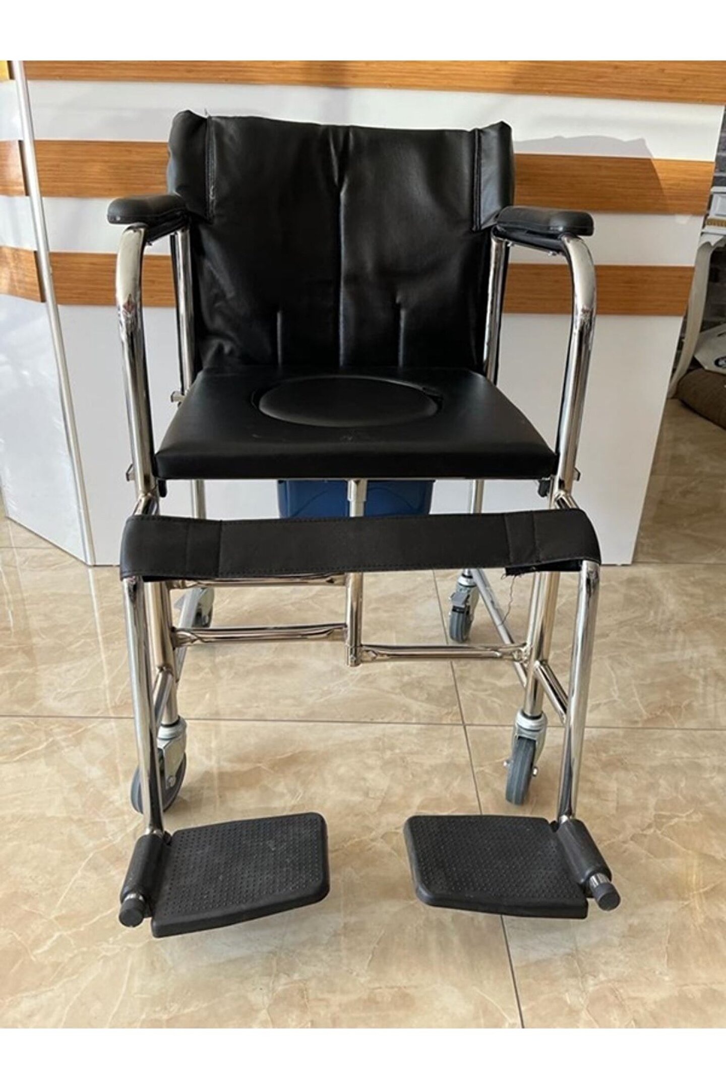 Koridor Arabası Krom Kaplı Tekerlekli Hasta Tuvaleti Komot Koridor