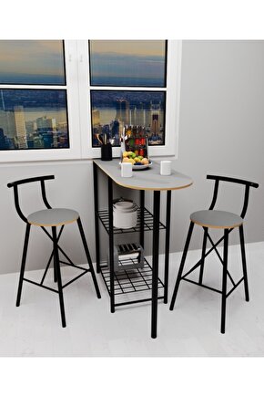 Güzelkan 2 Kişilik Mutfak Masası Mutfak Bar Masa Sandalye Takımı Katlanır Bar Sandalye Atlantik