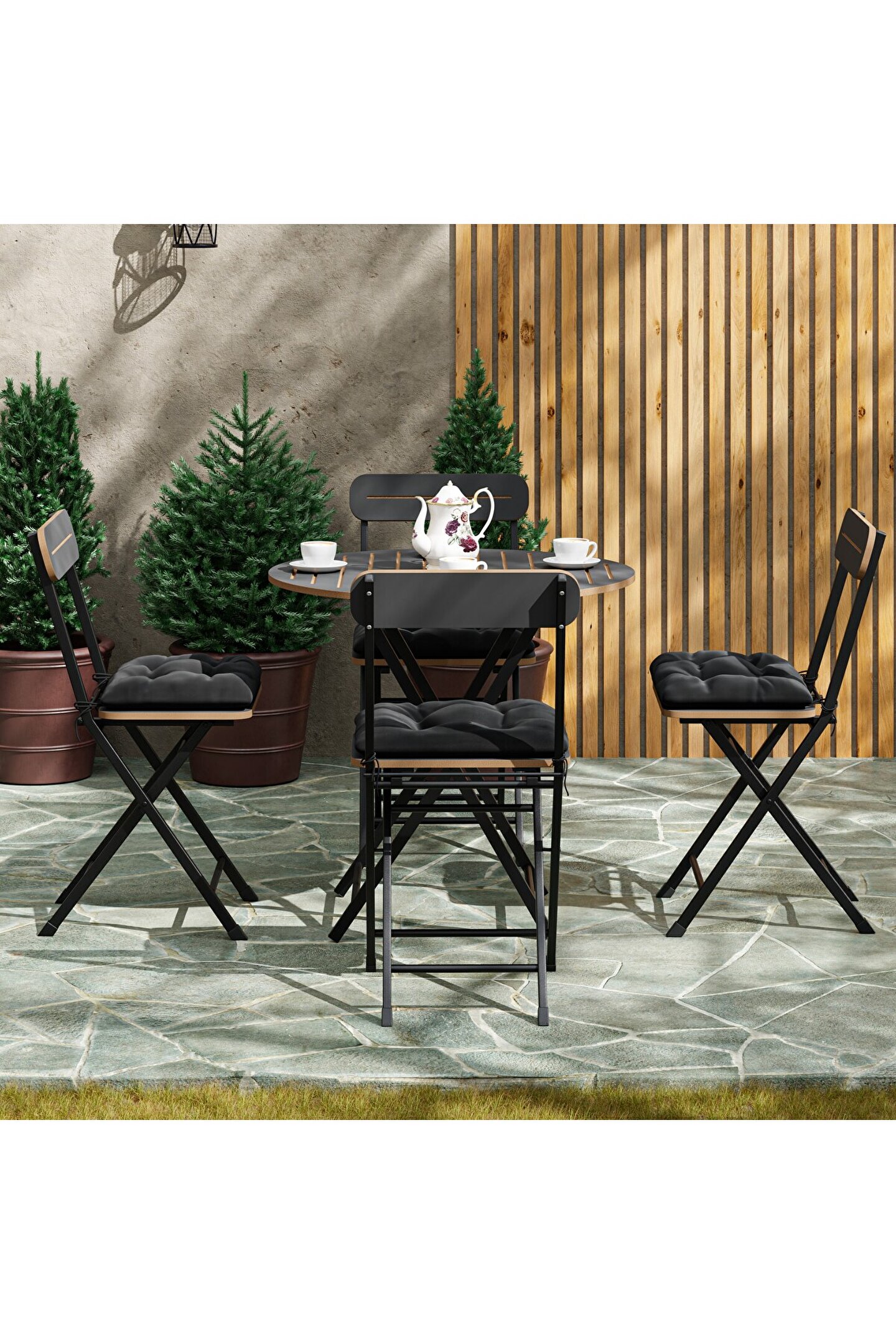 4 Kişilik Yuvarlak Bistro Takım Bahçe Mutfak Masa Sandalye , kullanım kolaylığı ve pratik montaj özellikleri ile öne çıkar. Set, kolay montaj ve demontaj imkanı sunar, böylece mevsim değişikliklerinde veya gerektiğinde kolayca saklanabilir. Çam malzemesi, düzenli bakım ile uzun yıllar boyunca ilk günkü gibi kalabilir, genellikle yılda bir kez yüzeylerin yağlanması yeterlidir.