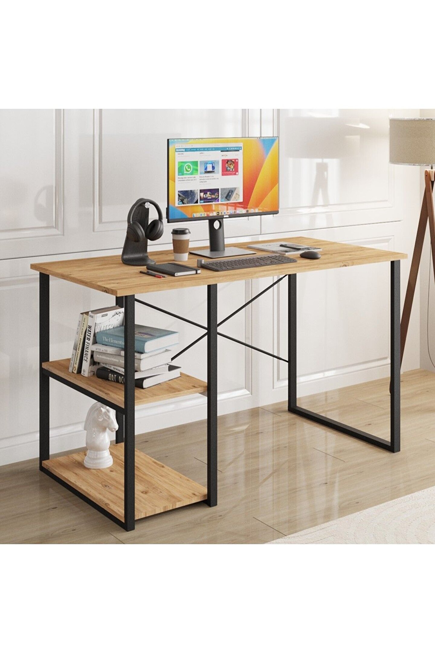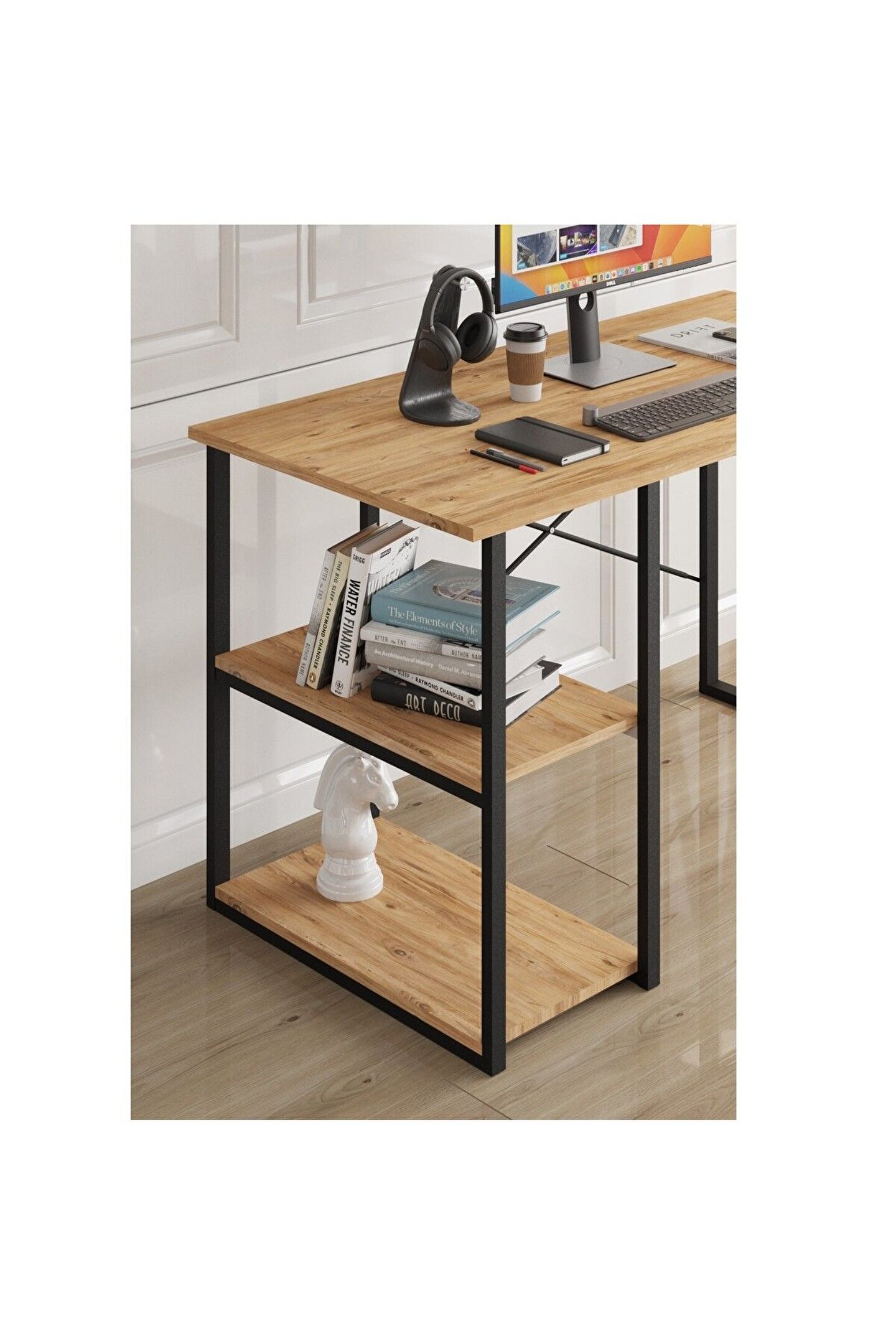 Güzelkan Çalışma Masası Raflı Ofis Laptop Bilgisayar Masası Çam