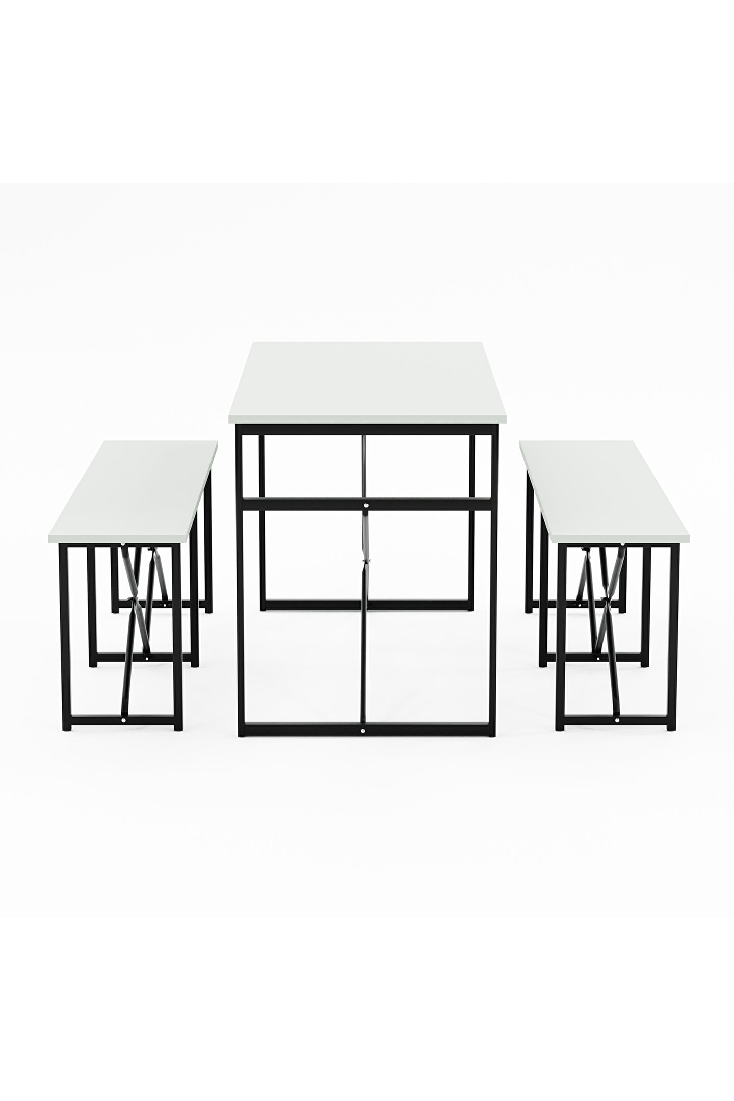 Bu  şık masa seti , yemek ve mutfak alanları için mükemmel bir çözüm sunar. Masa, 120x60 cm ölçülerinde bir tabla sunarken, 70 cm yükseklikle ideal bir yemek ve çalışma alanı sağlar. Bench'ler ise 120 cm genişlik, 32 cm derinlik ve 45 cm yükseklikte tasarlanmış olup, rahat oturma ve ek depolama alanı sunar. Setin her bir bileşeni, günlük kullanıma uygun dayanıklılıkta suntalam malzeme ile üretilmiştir.  Masa ve bench  ayakları, dayanıklılık ve sağlamlık için demir elektro statik boyalıdır. Bu işlem, metalin korozyona uğramasını önler ve uzun süreli bir kullanım sağlar. Ayakların robust yapısı, masa setinin kararlılığını artırır ve her türlü kullanım koşuluna dayanıklı hale getirir.  Masa seti , kolay montajı ve sağlam yapısı ile hem ev hem de ticari mekanlar için ideal bir seçimdir.