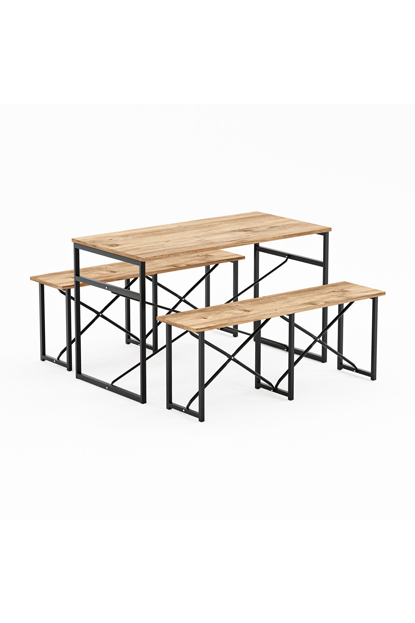 Bu şık masa seti , yemek ve mutfak alanları için mükemmel bir çözüm sunar. Masa, 120x60 cm ölçülerinde bir tabla sunarken, 70 cm yükseklikle ideal bir yemek ve çalışma alanı sağlar. Bench'ler ise 120 cm genişlik, 32 cm derinlik ve 45 cm yükseklikte tasarlanmış olup, rahat oturma ve ek depolama alanı sunar. Setin her bir bileşeni, günlük kullanıma uygun dayanıklılıkta suntalam malzeme ile üretilmiştir. Masa ve bench ayakları, dayanıklılık ve sağlamlık için demir elektro statik boyalıdır. Bu işlem, metalin korozyona uğramasını önler ve uzun süreli bir kullanım sağlar. Ayakların robust yapısı, masa setinin kararlılığını artırır ve her türlü kullanım koşuluna dayanıklı hale getirir. Masa seti , kolay montajı ve sağlam yapısı ile hem ev hem de ticari mekanlar için ideal bir seçimdir.