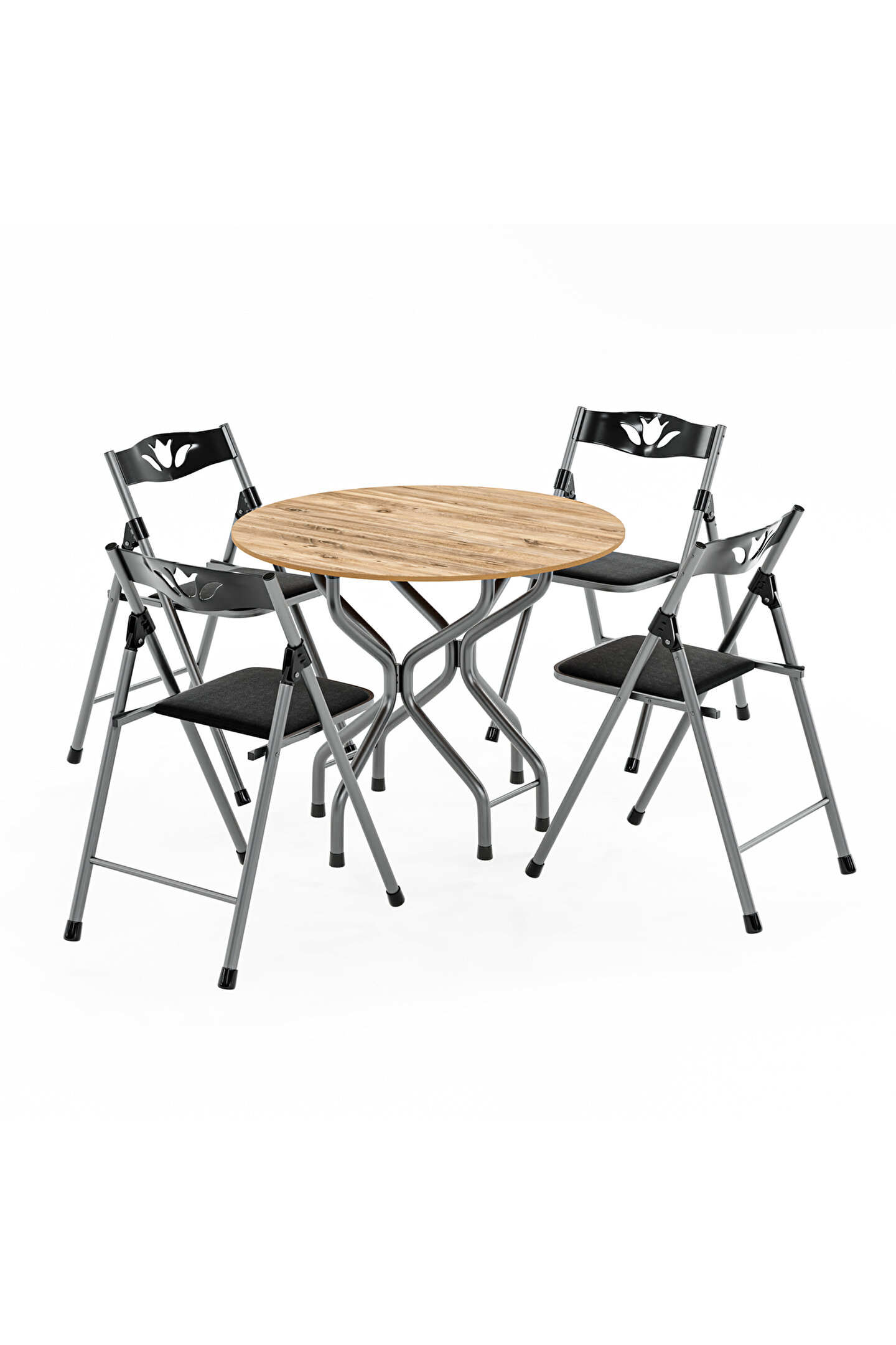 Evlerin herhangi bir alanında ve aynı zamanda iş yerlerinde de kullanılabilen Mutfak Masa Sandalye Takımı Bahçe Yemek Masa Seti Yuvarlak, dört adet sandalye ve bir adet yuvarlak masadan meydana gelen bir settir. Siyah renk tonlarında üretilen